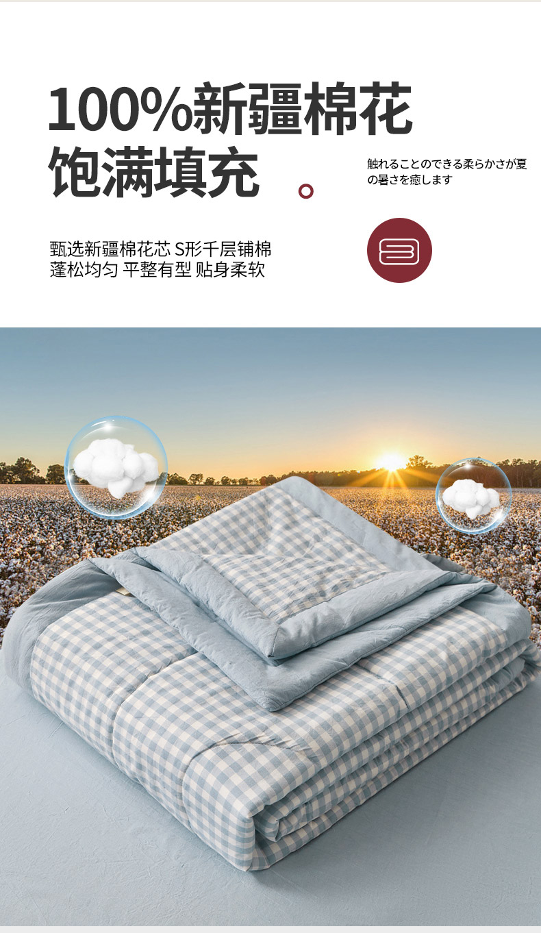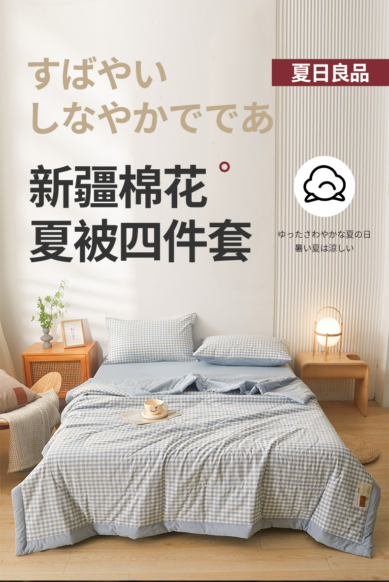 • 91家纺网 家纺一手货源 找家纺  2025新款无印风新疆棉花夏被夏凉被空调可机洗(提供买家秀 爆款花型 不断货) 蓝小格