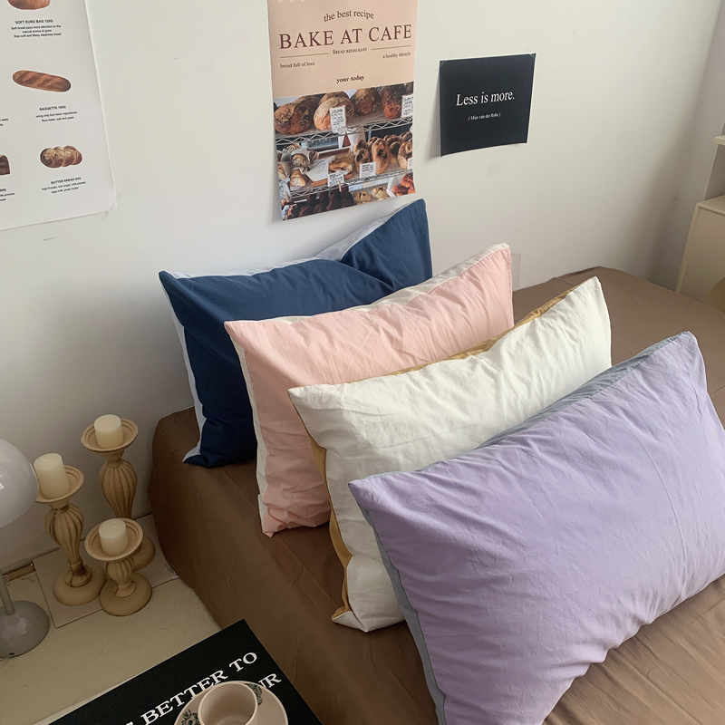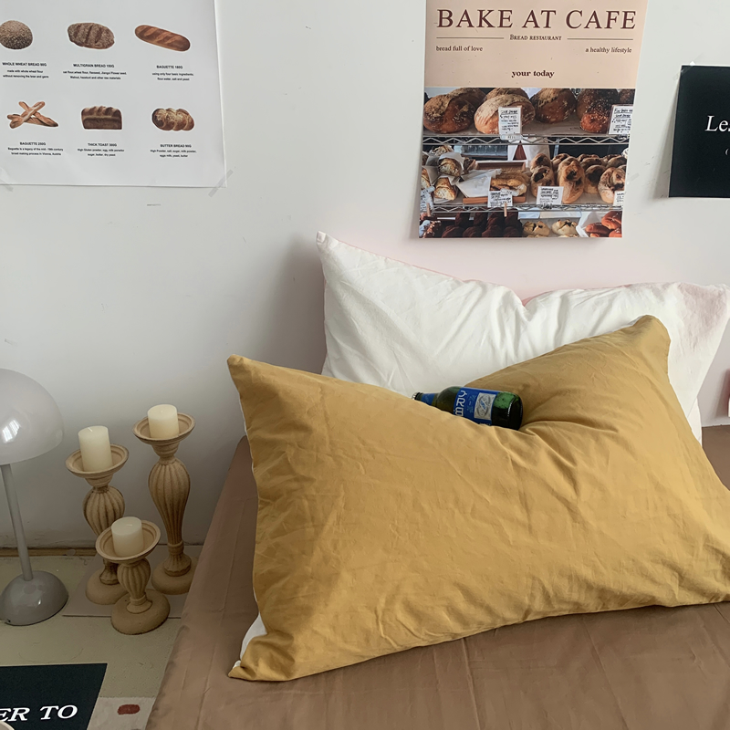 商品名称:柚可家居 2024新款40支全棉色织水洗棉单品系列-单枕套 姜黄拼白