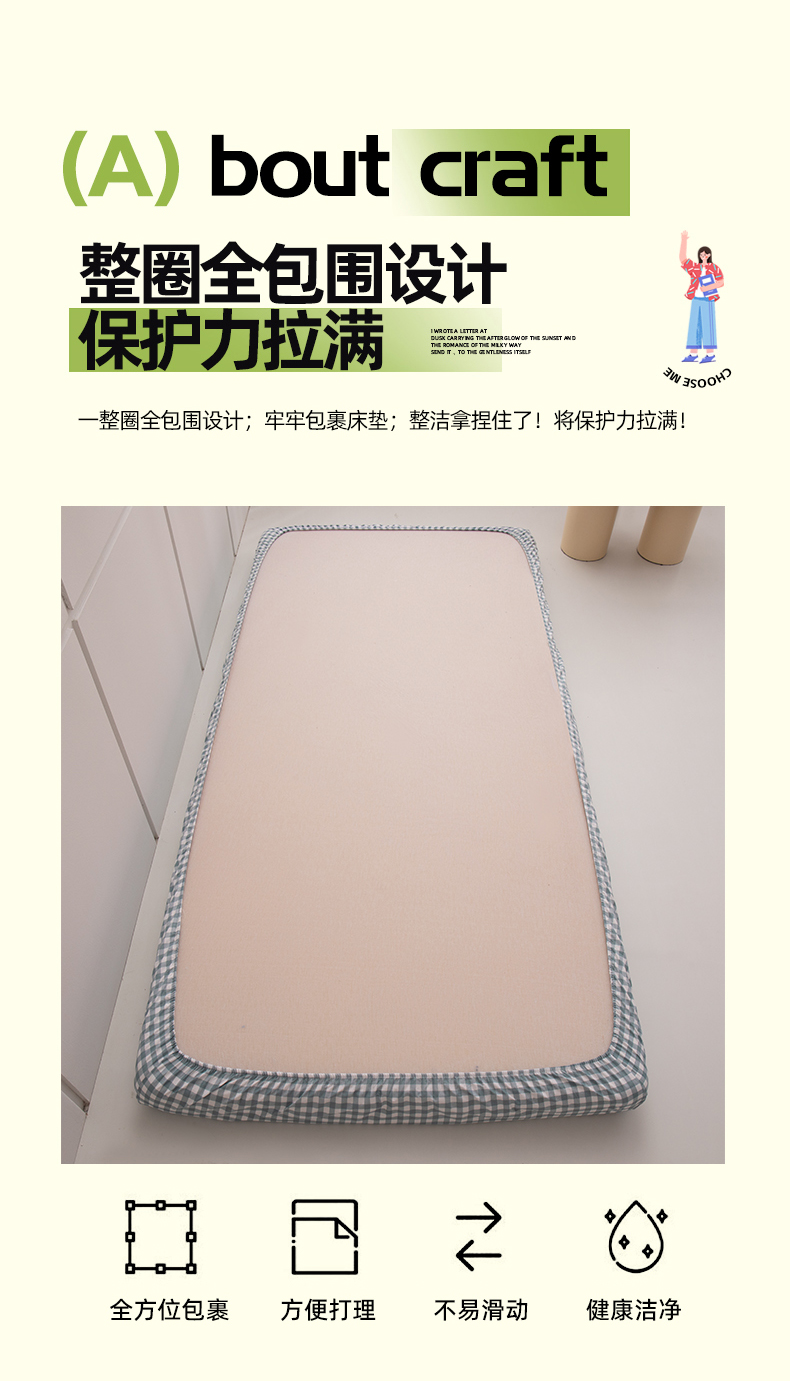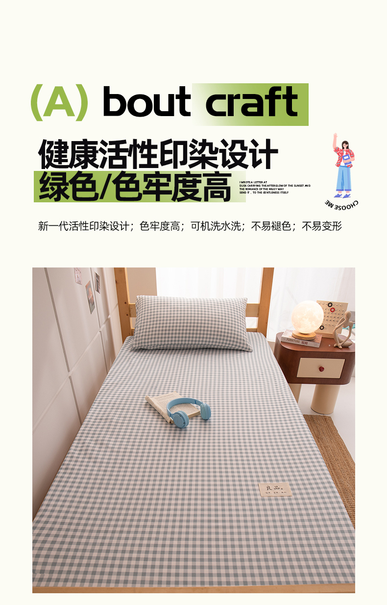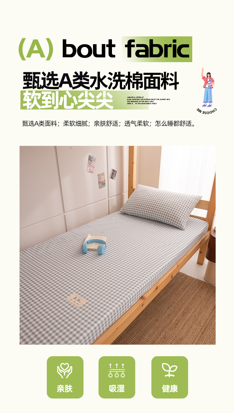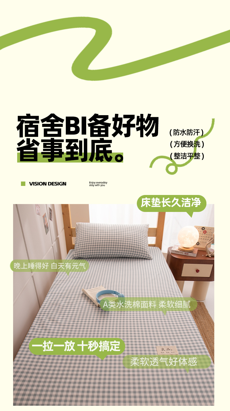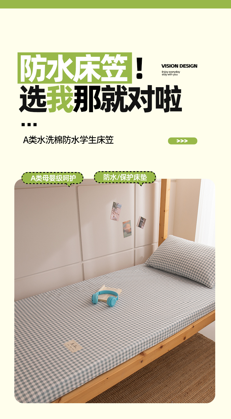 商品名称:暖季家纺2025新款无印风学生防水床笠 防水-宝蓝小格