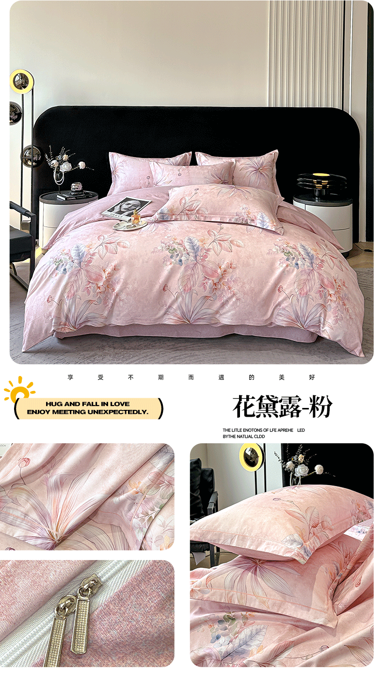 喜四方 2025新款加厚天丝棉磨毛数码印花四件套 花黛露-粉