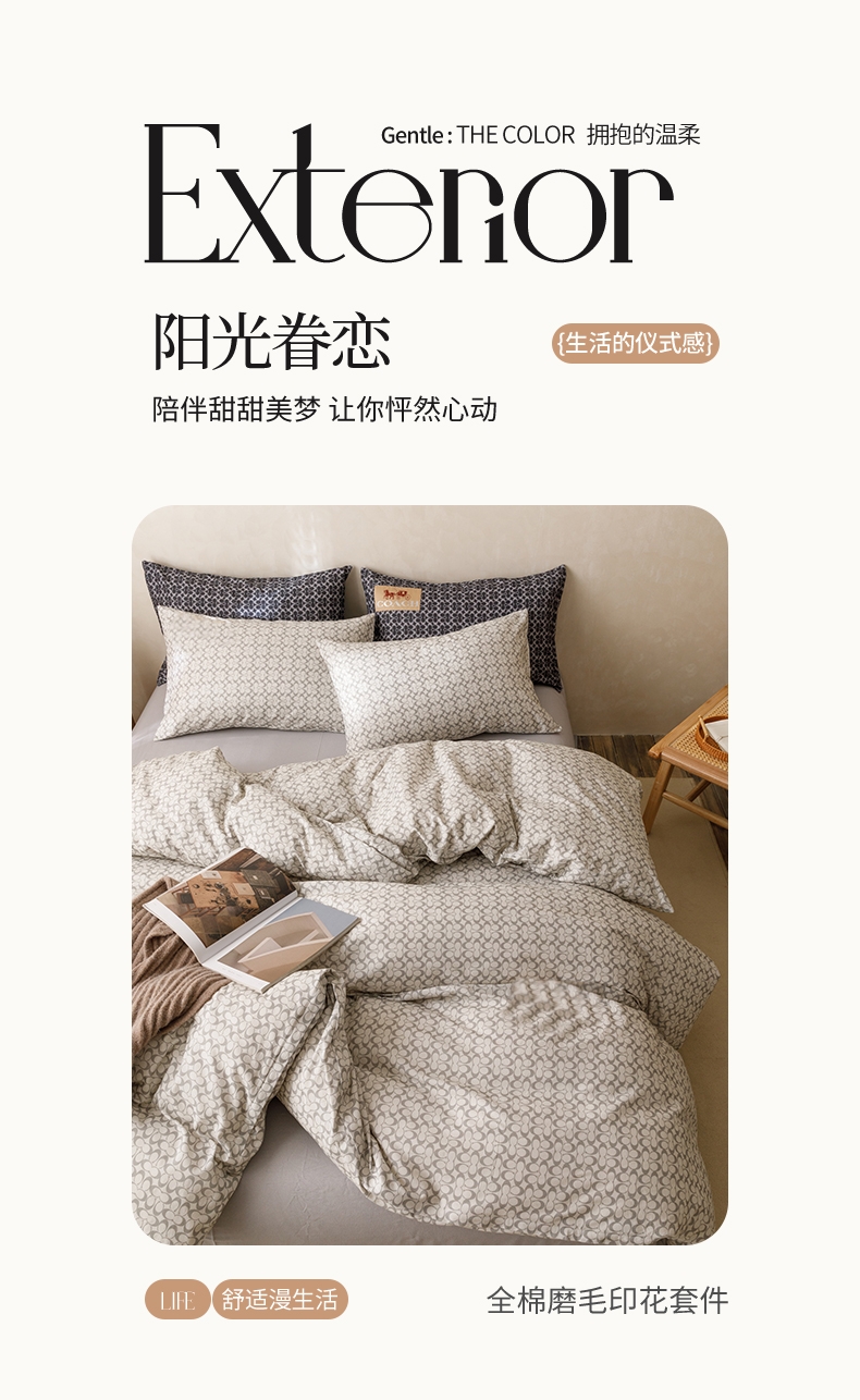 当前位置: 91家纺网 > 商品网购 > 床品套件 > 四件套 > 普通磨毛四件套 > 棉生活家纺 2025新款北欧简约全棉磨毛四件套 艾可-紫