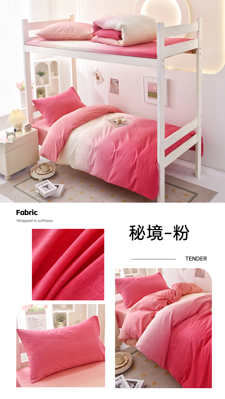 商品名称:启优家纺 2025新款13372全棉纯棉学生宿舍上下铺三件套 樱花粉