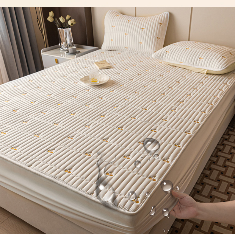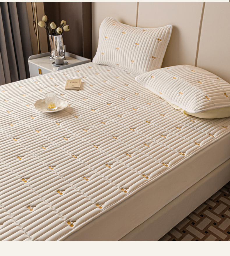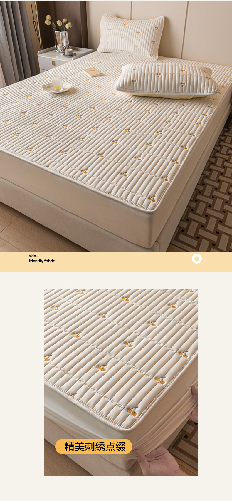 暖季家纺 2025新款A类亲肤面料夹棉绣花床笠-防水款 小樱桃-白-防水款