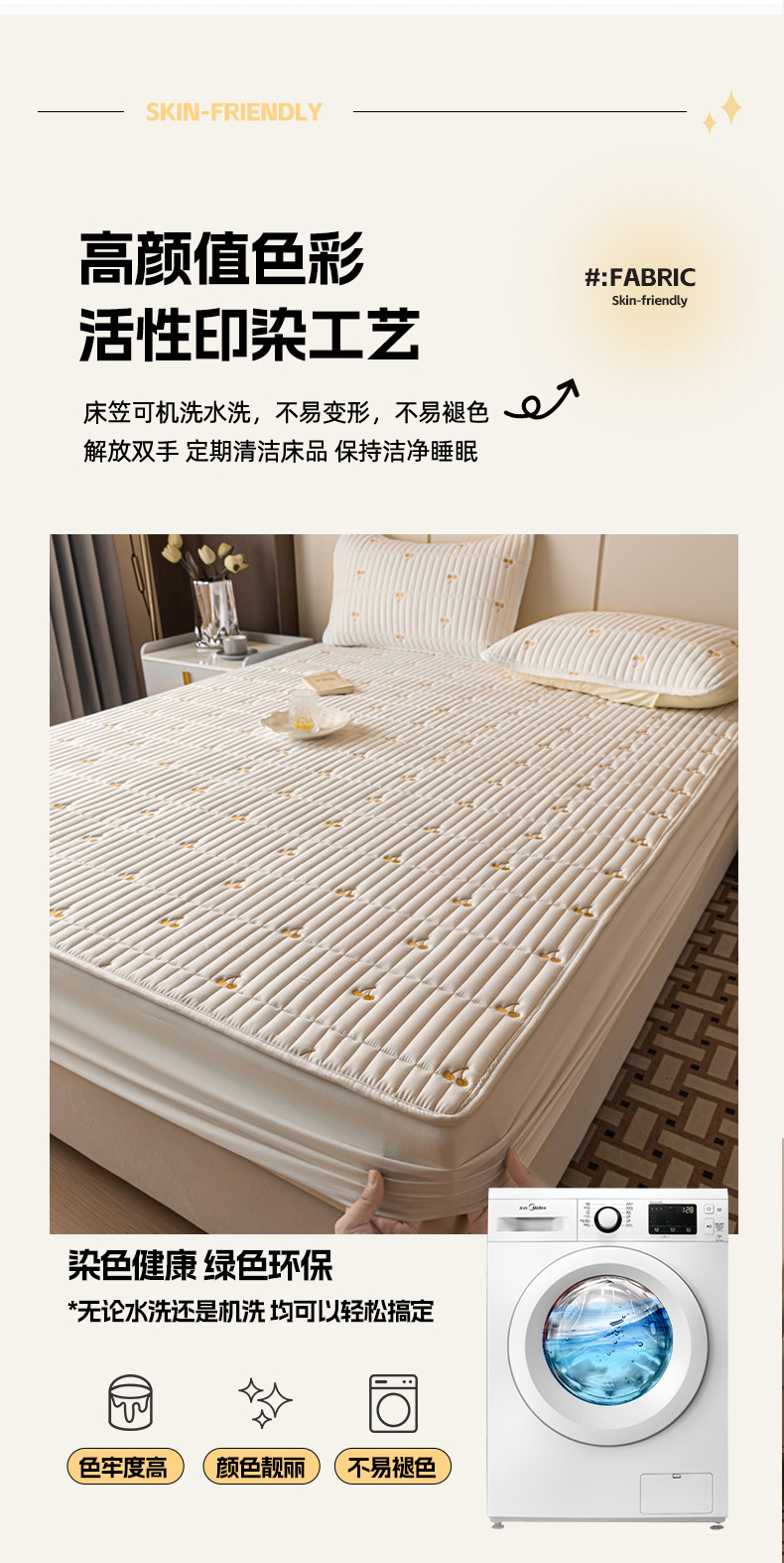 • 91家纺网 家纺一手货源 找家纺 暖季家纺 2025新款A类亲肤面料夹棉绣花床笠-防水款 小樱桃-白-防水款
