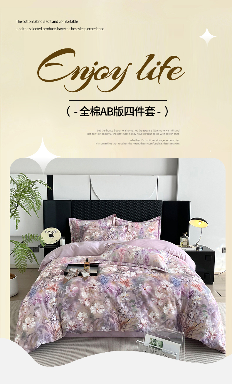 金纱玉纺家纺 2024新款全棉大版印花13372四件套 幽香恋曲,幽香恋曲