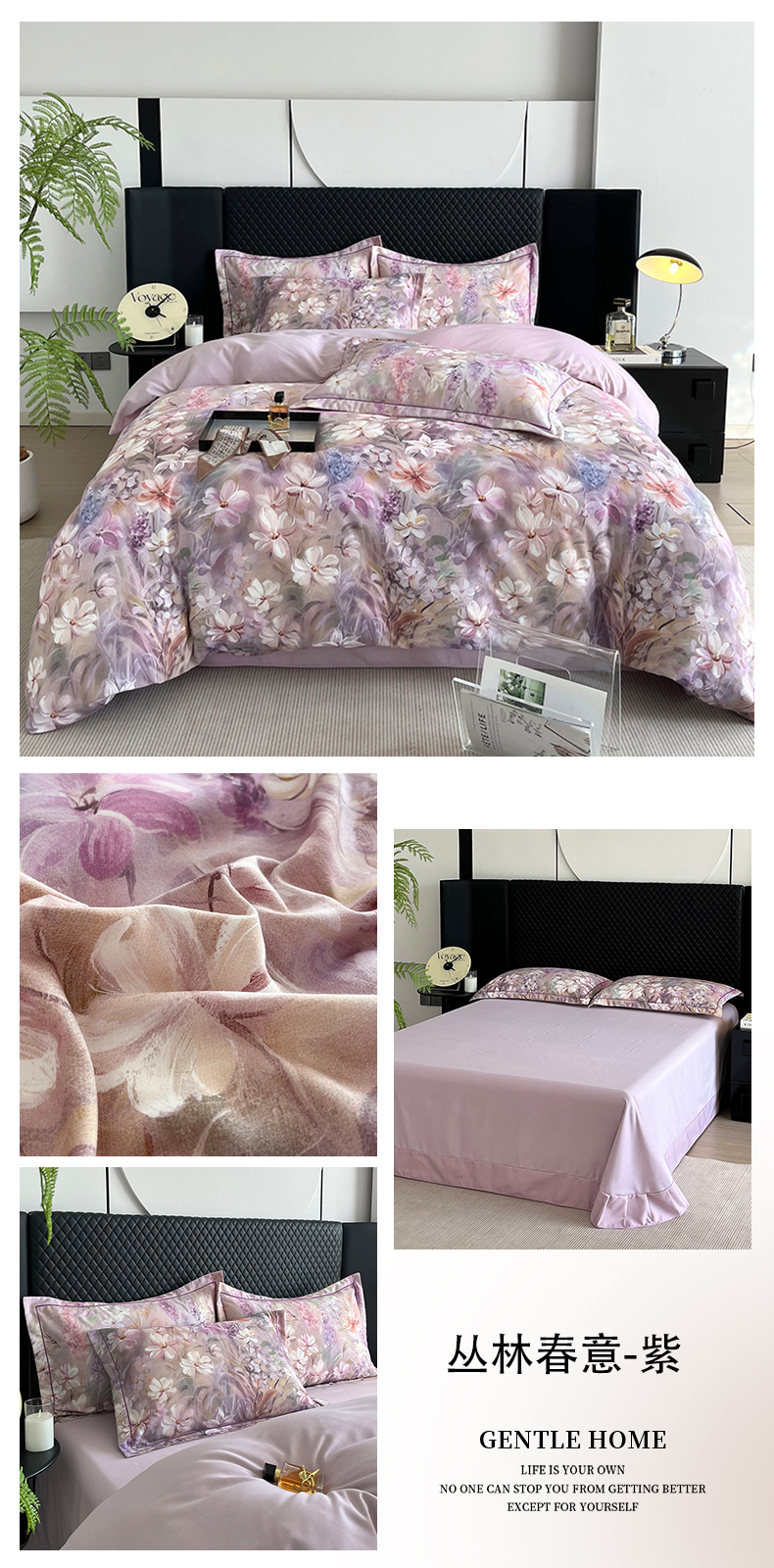 商品名称:金纱玉纺 2025年新款加厚四件套 丛林春意-紫