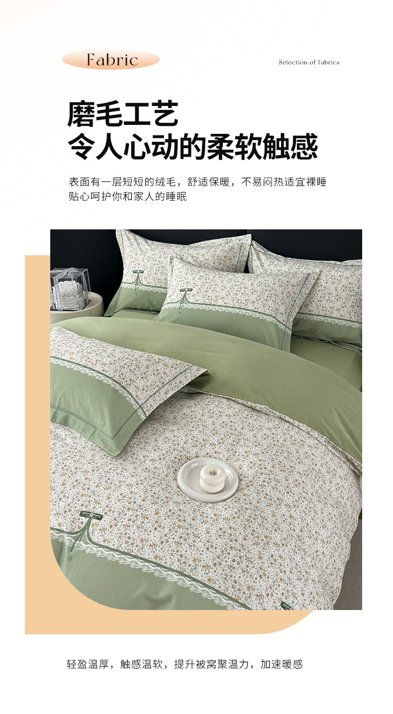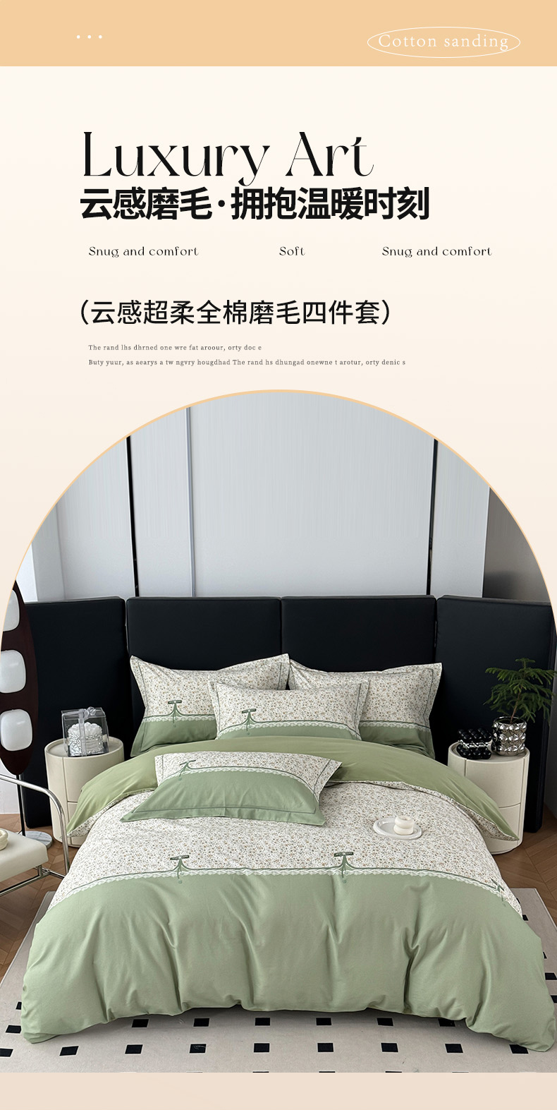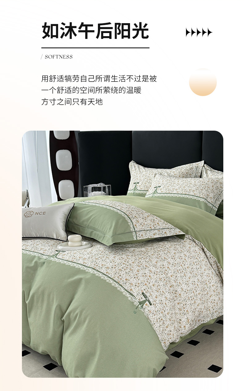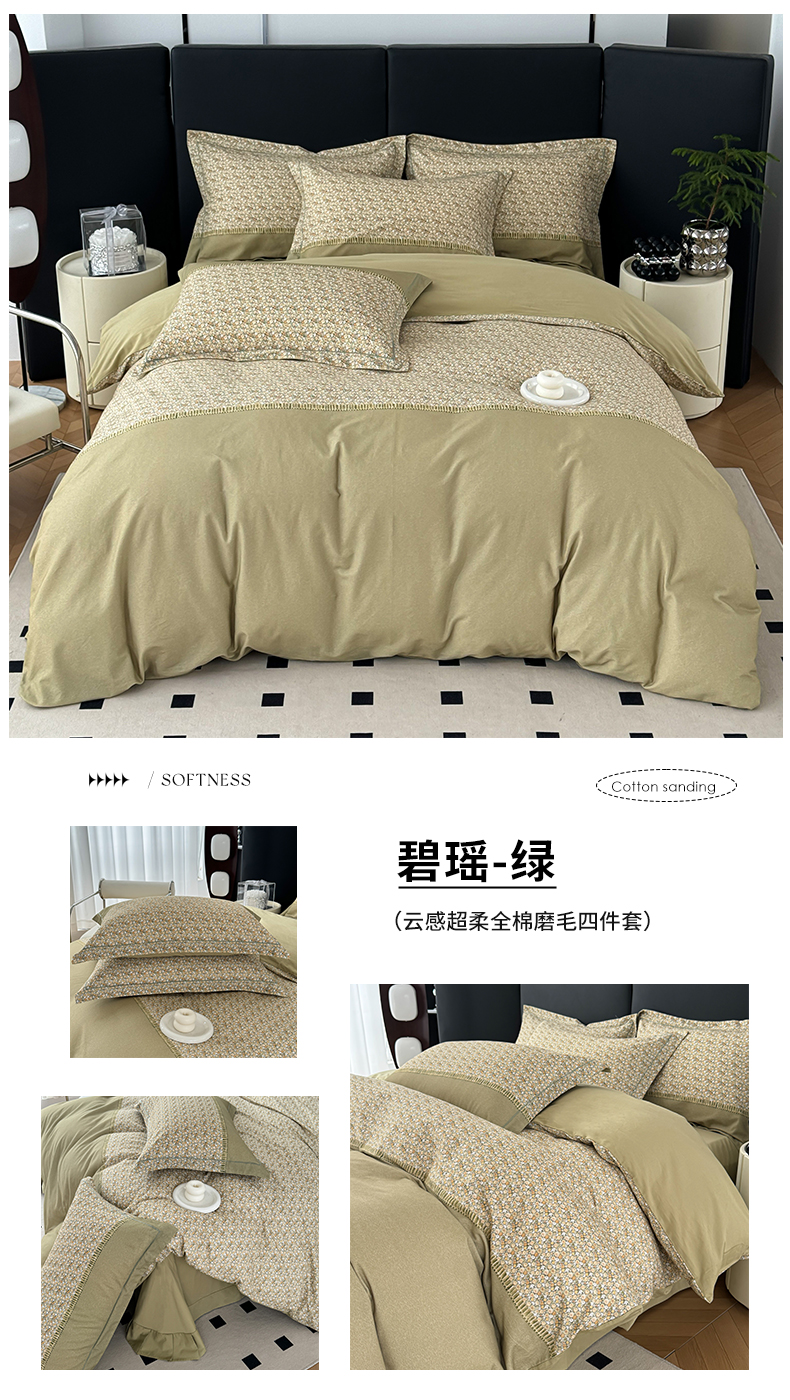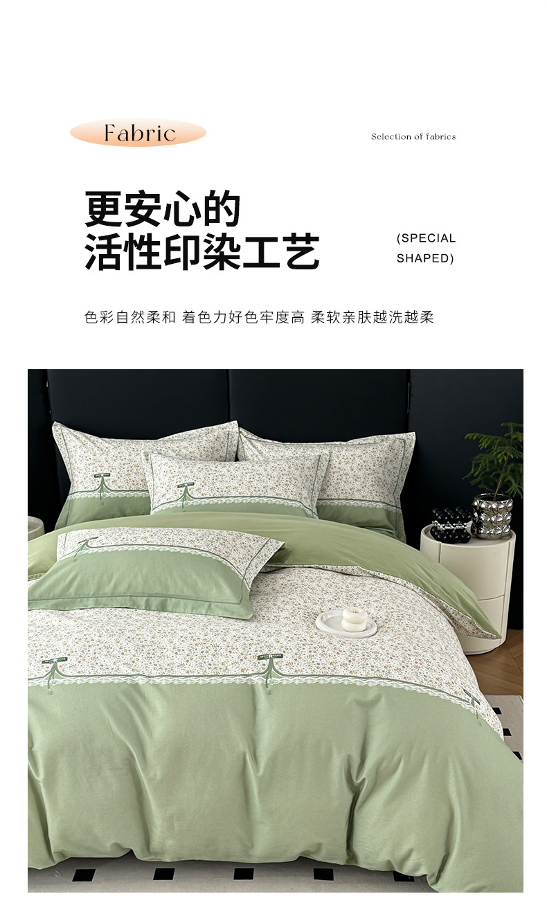 当前位置: 91家纺网 > 商品网购 > 床品套件 > 四件套 > 全棉普通四件套 > 艾迪尚家纺 2025新款云感超柔全棉磨毛印花四件套系列 芳菲-绿