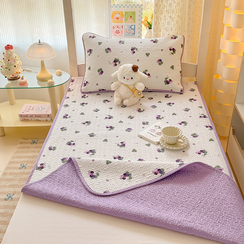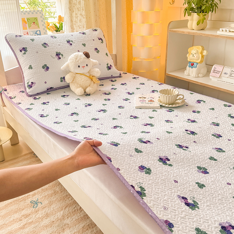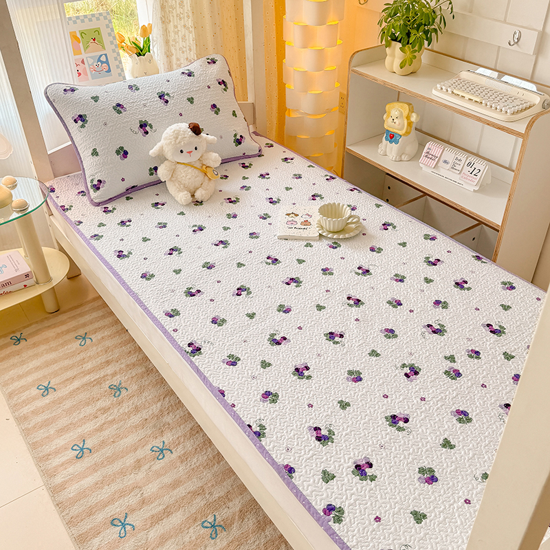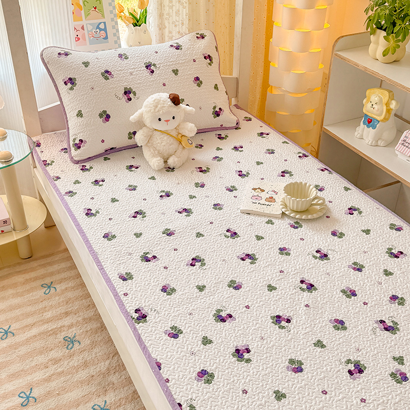 期遇家居 2025新款13372全棉印花学生床盖双面纯棉宿舍床盖 紫葡萄