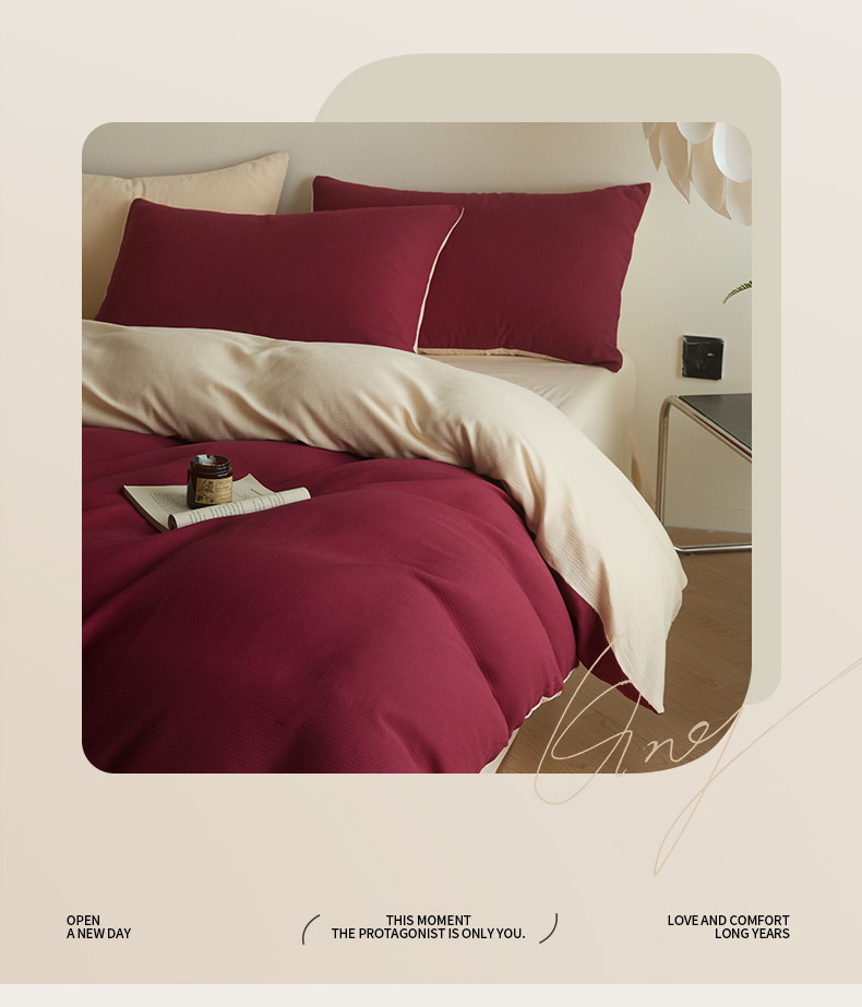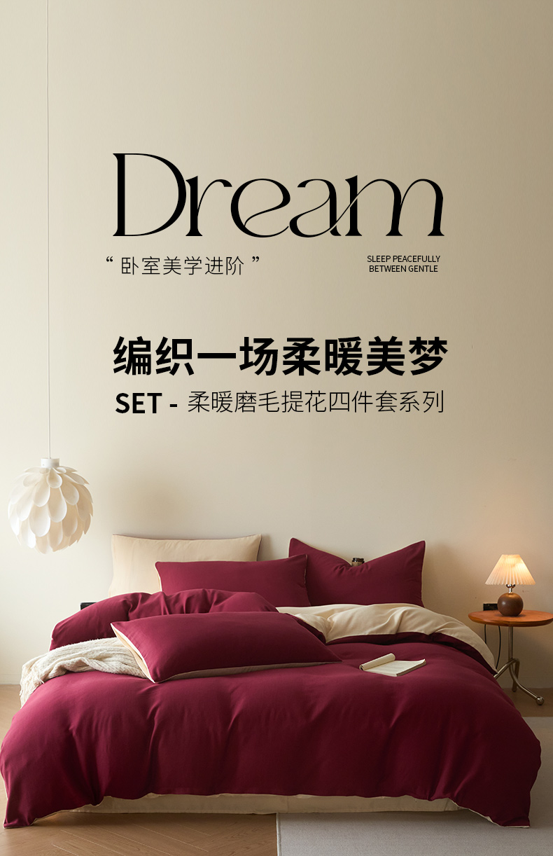 当前位置: 91家纺网 > 商品网购 > 床品套件 > 四件套 > 提花四件套 > ab家纺 2025新款全棉纯棉磨毛提花四件套 樱桃红-米杏
