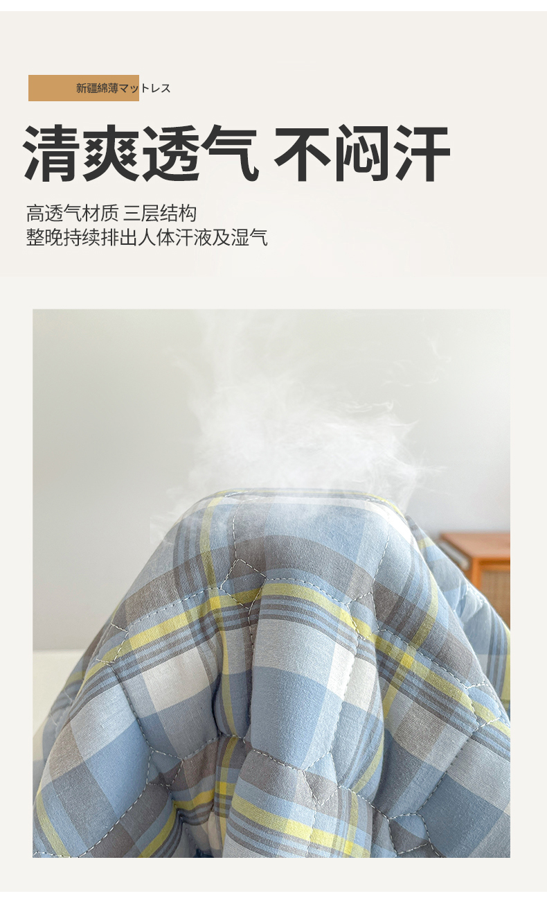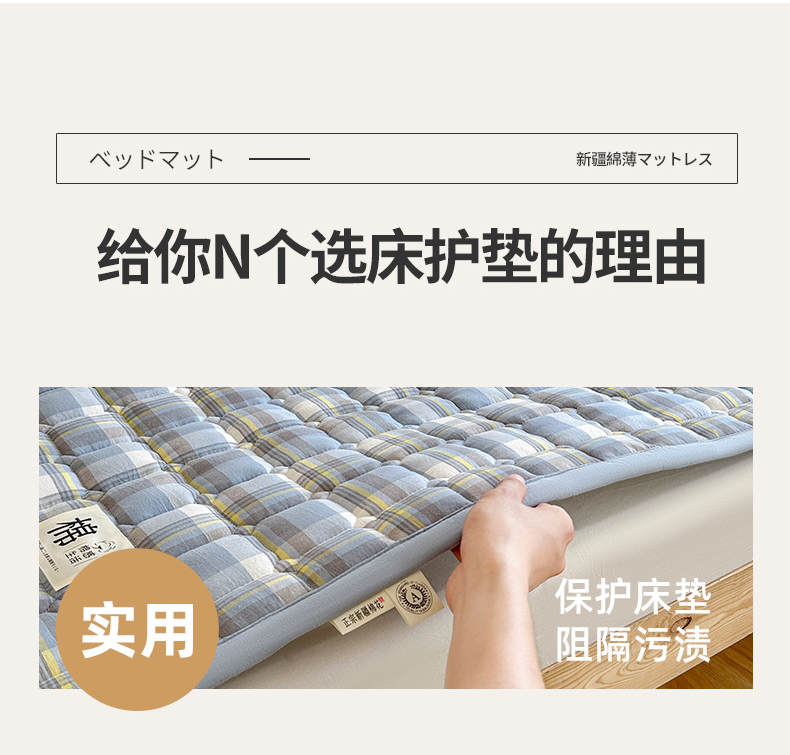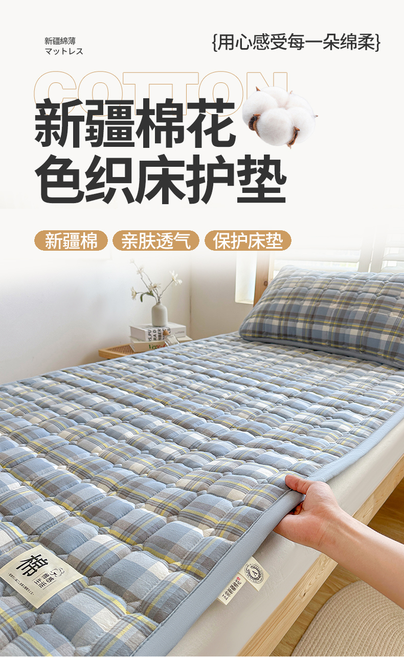 • 91家纺网 家纺一手货源 找家纺 梵朴 2025新款A类无印风水洗棉夹棉新疆棉花宿舍学生床垫床护垫 深灰