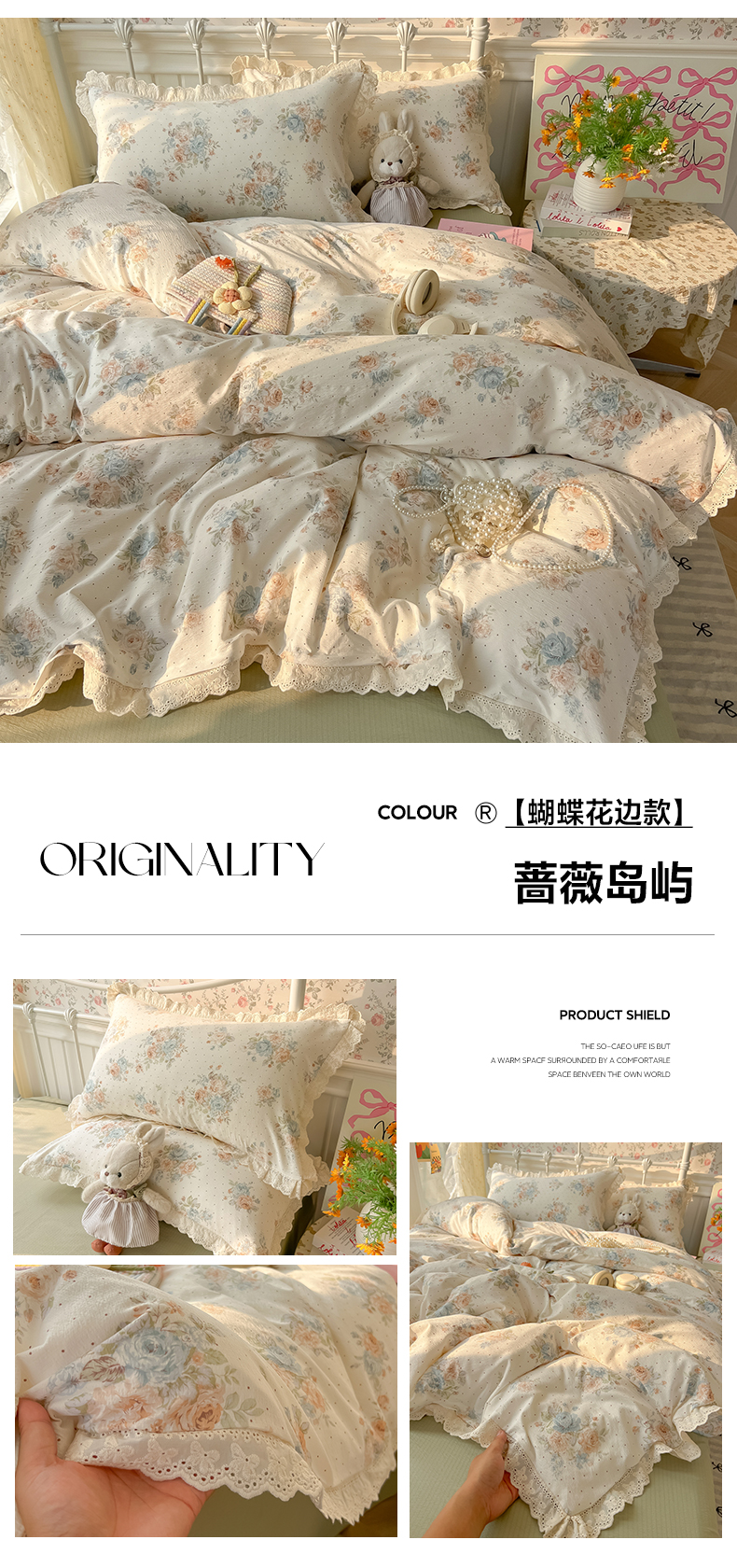 当前位置: 91家纺网 > 商品网购 > 床品套件 > 四件套 > 其它四件套 > 韩巢家纺 2025新款蝴蝶花边直播热销款四件套开学季韩系学生宿舍床上三件套-(提供卖家秀) 蔷薇岛屿【蝴蝶花边款】