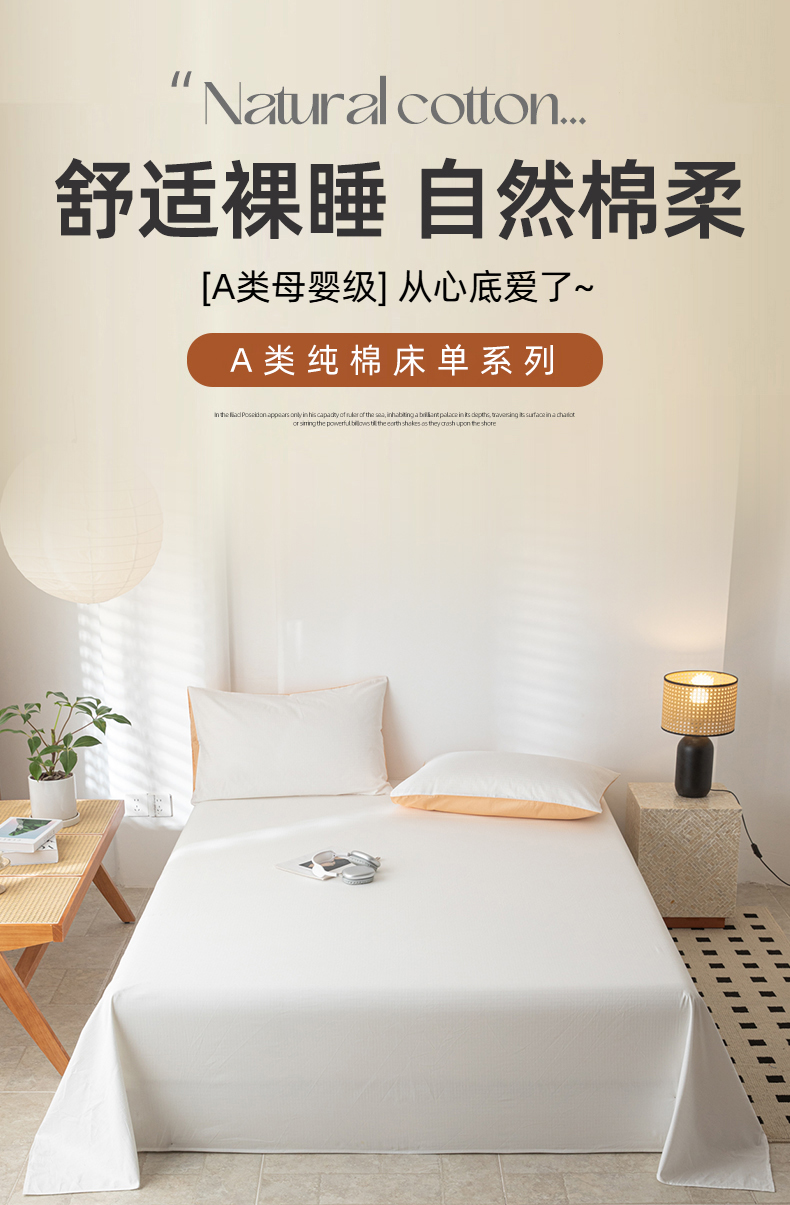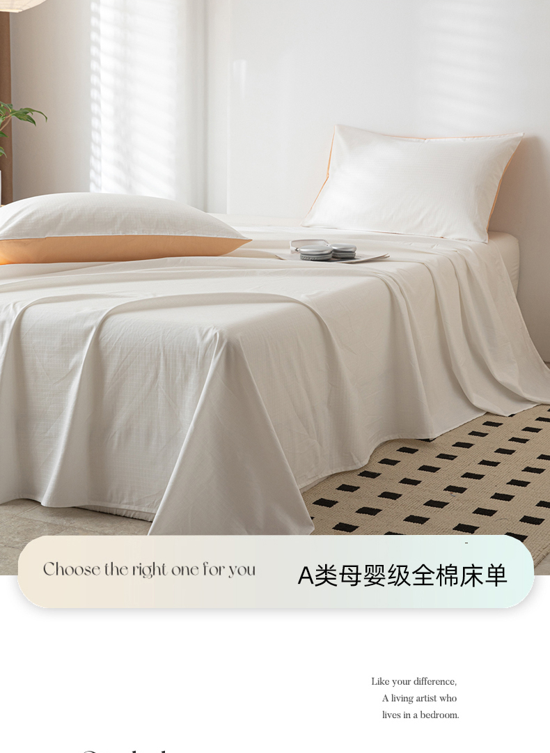 简宜家居(朝初家纺) 2025新款60支贡缎提花A版纯棉床单 绅士-米白