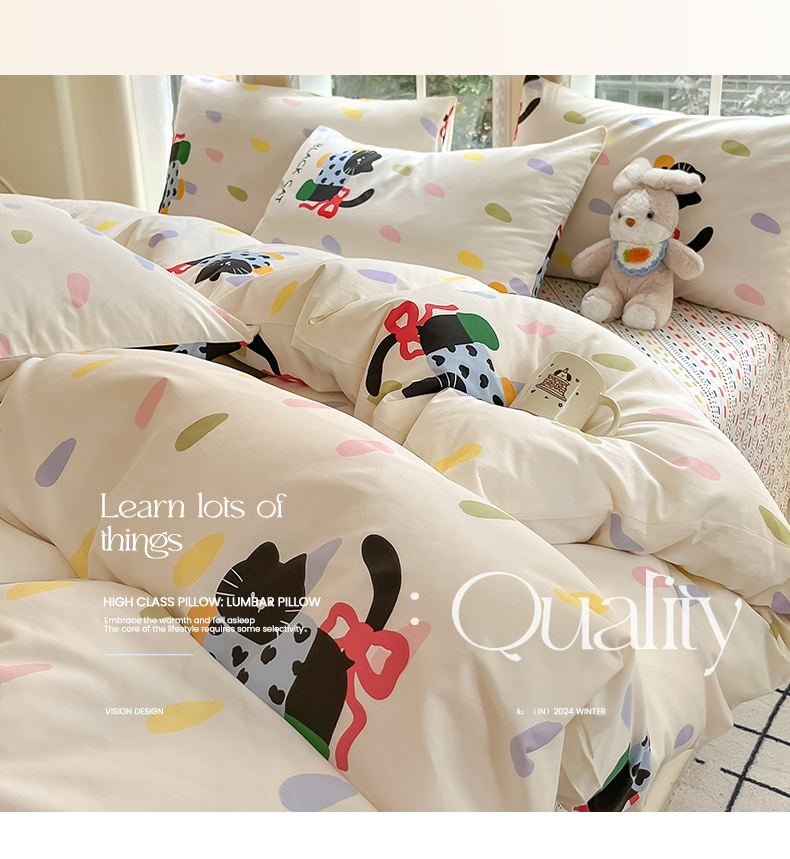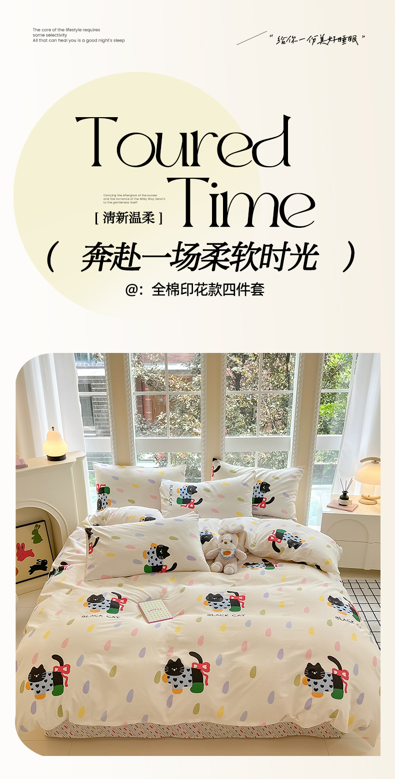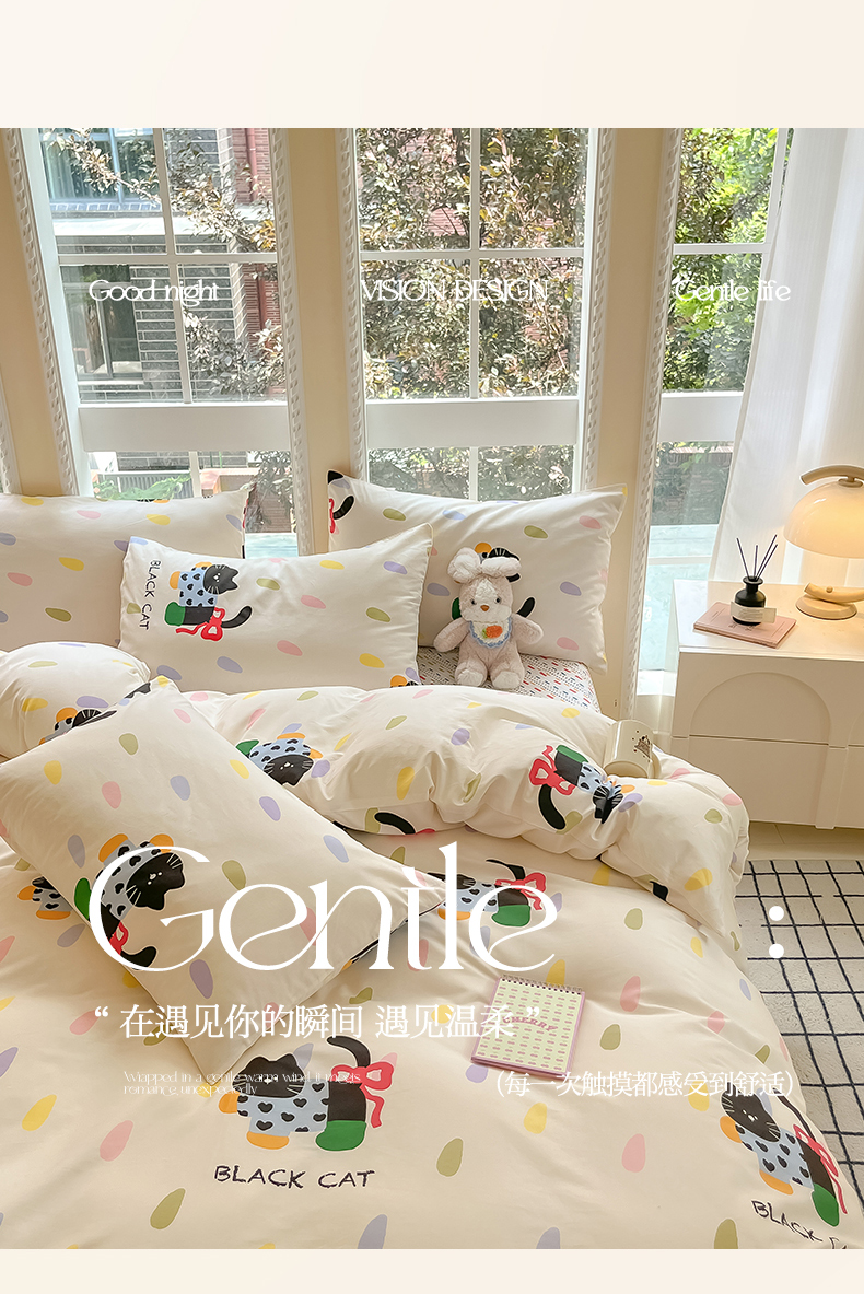 当前位置: 91家纺网 > 商品网购 > 床品套件 > 四件套 > 全棉普通四件套 > 吉象家纺 2025新款亲肤舒适全棉纯棉小清新卡通系列四件套 靴子猫