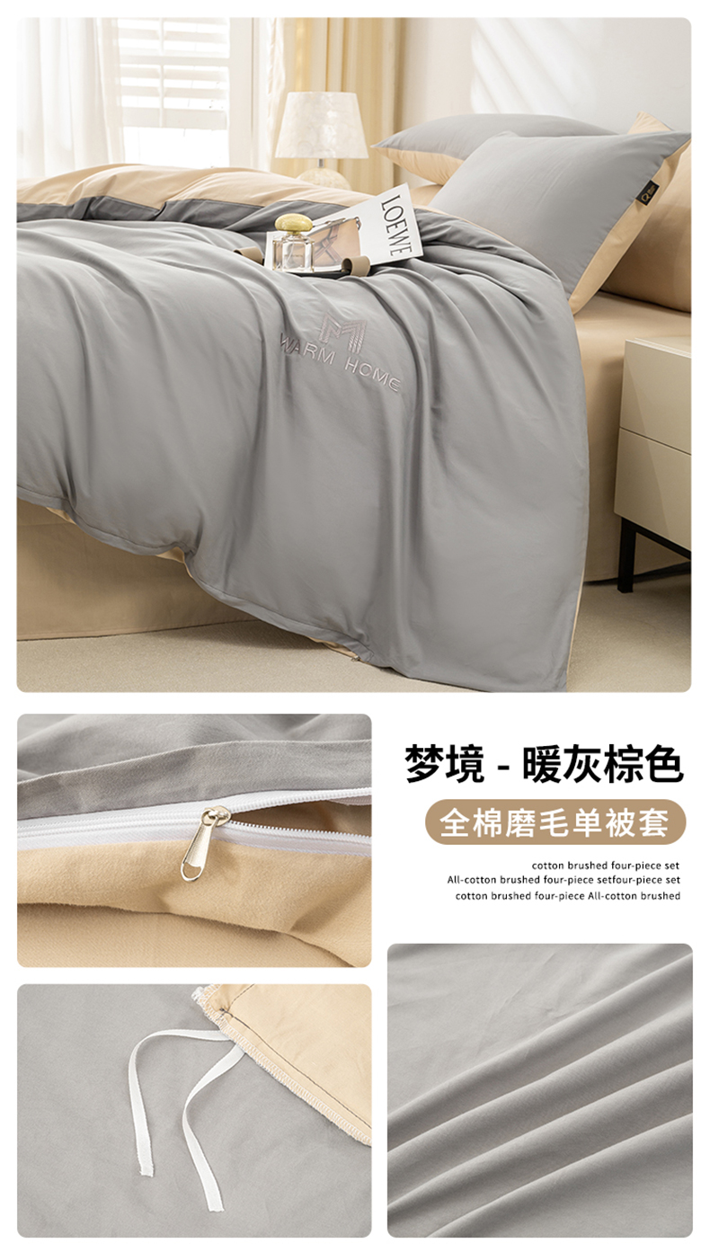 商品名称:憨豆家纺 2026新款全棉磨毛加厚长绒棉单被套纯色学生宿舍贡缎100%纯棉被套 梦境--暖灰棕色