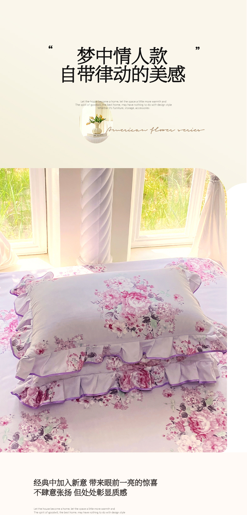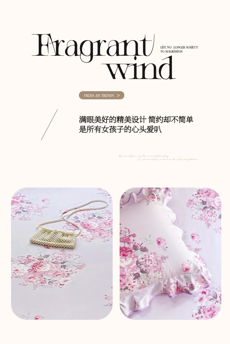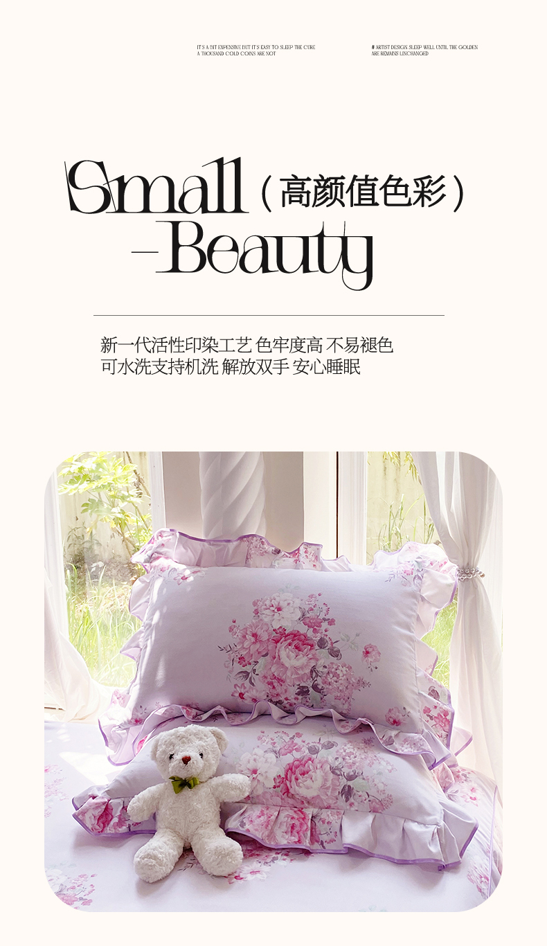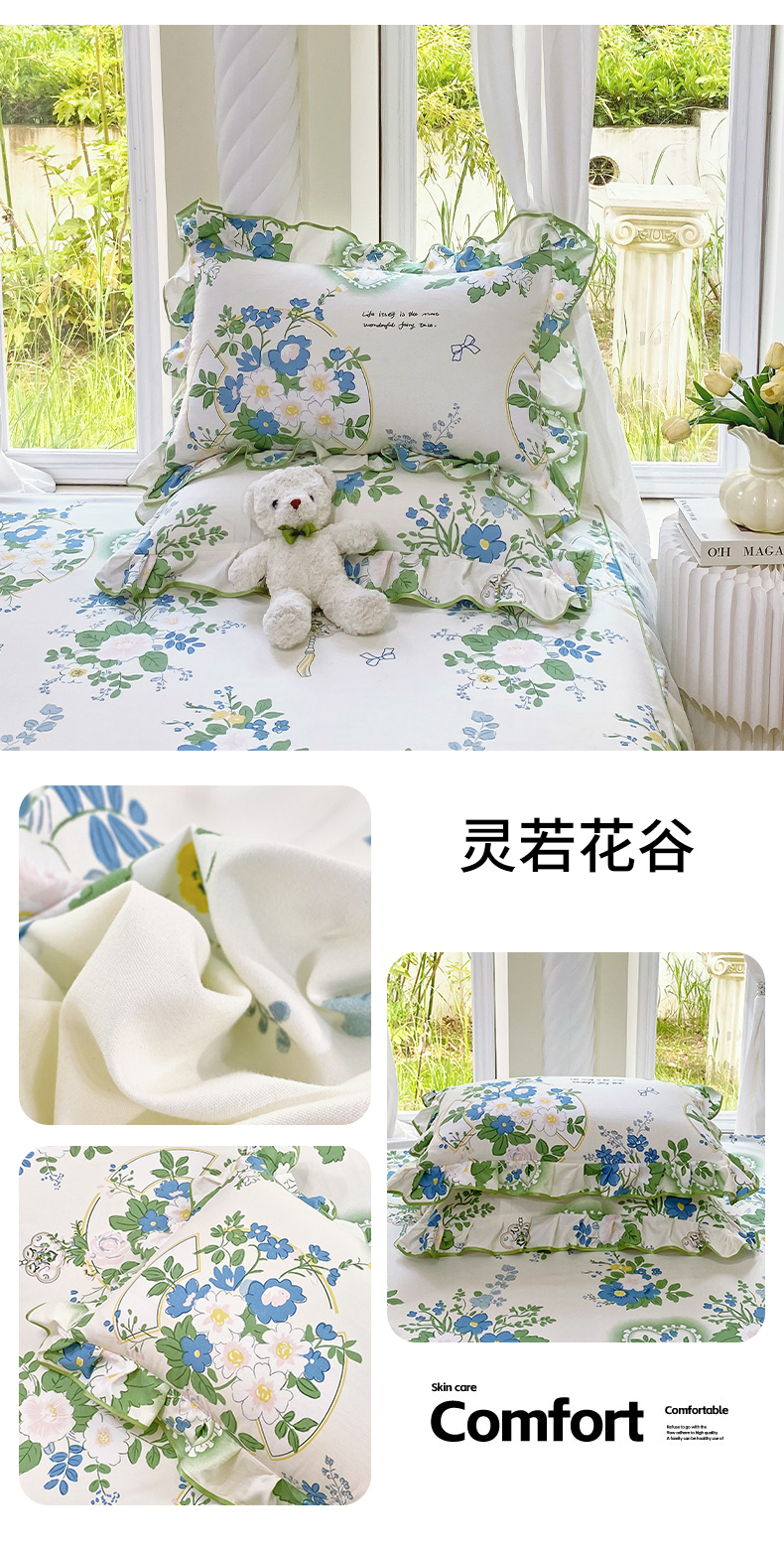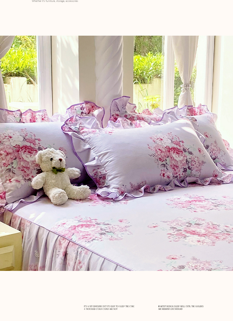 商品名称:雨彤家纺 2025新款韩式公主风亲肤斜纹枕套 公主风-琉璃晚香