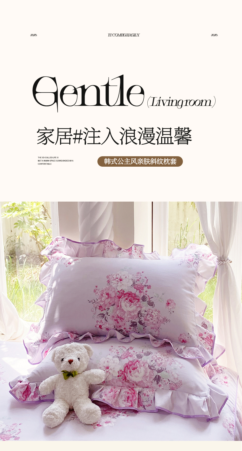 雨彤家纺 2025新款韩式公主风亲肤斜纹枕套 公主风-琉璃晚香