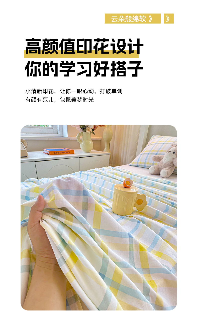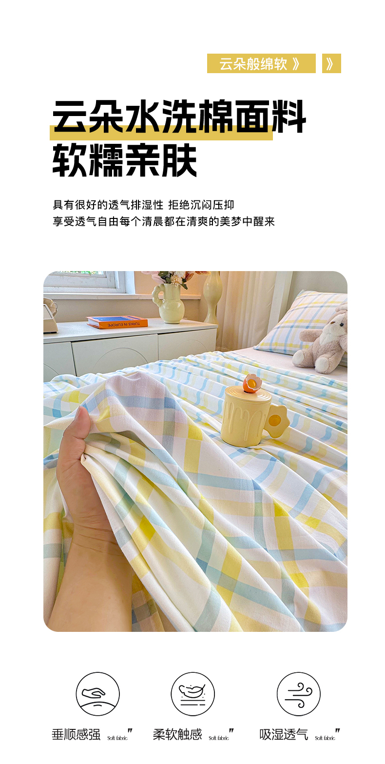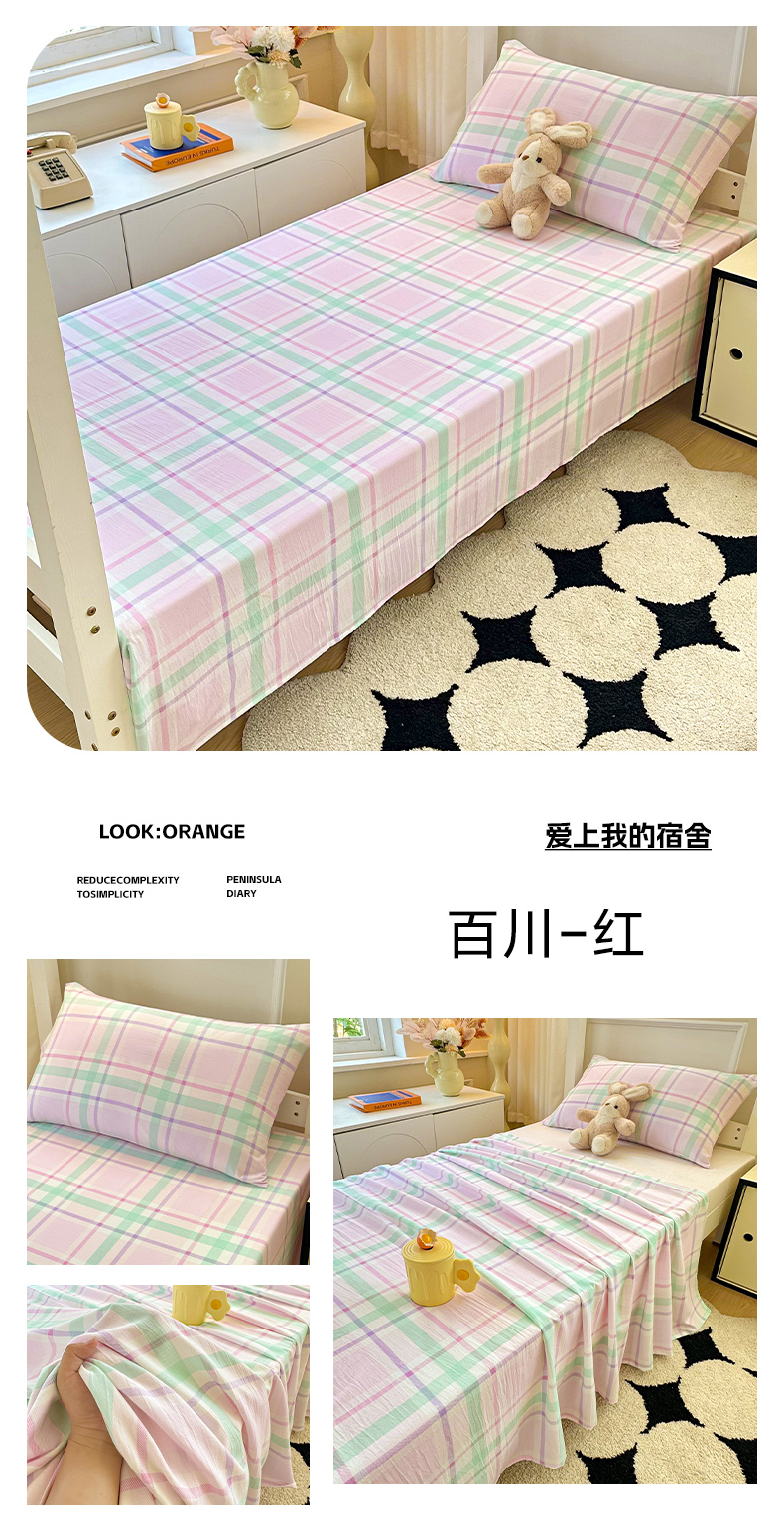 • 91家纺网 家纺一手货源 找家纺 雨彤家纺 2025条纹水洗棉学生宿舍床单单床单床单单件 格心生活