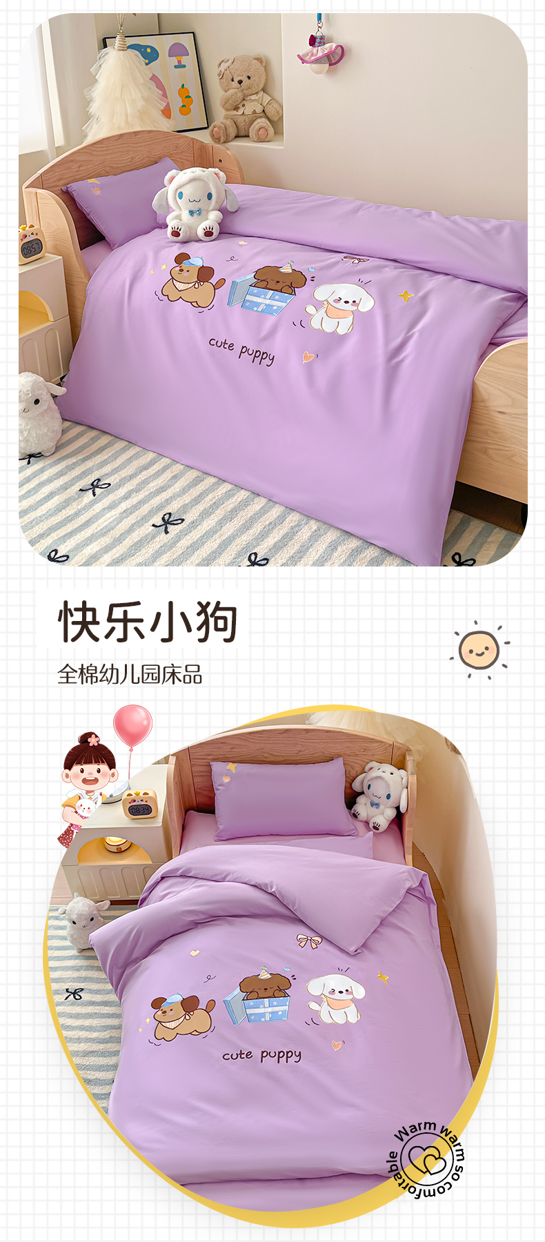 当前位置: 91家纺网 > 商品网购 > 床品套件 > 三件套 > 乐沐家纺 2025新款全棉纯棉高端贴布刺绣幼儿园套件儿童三件套被子被芯婴童宝宝六件套七件套 快乐小狗