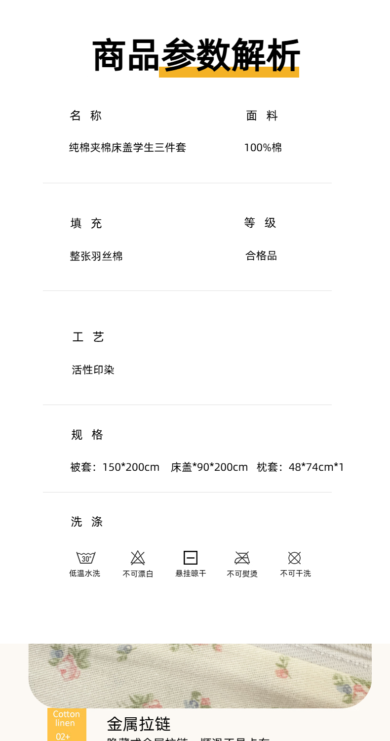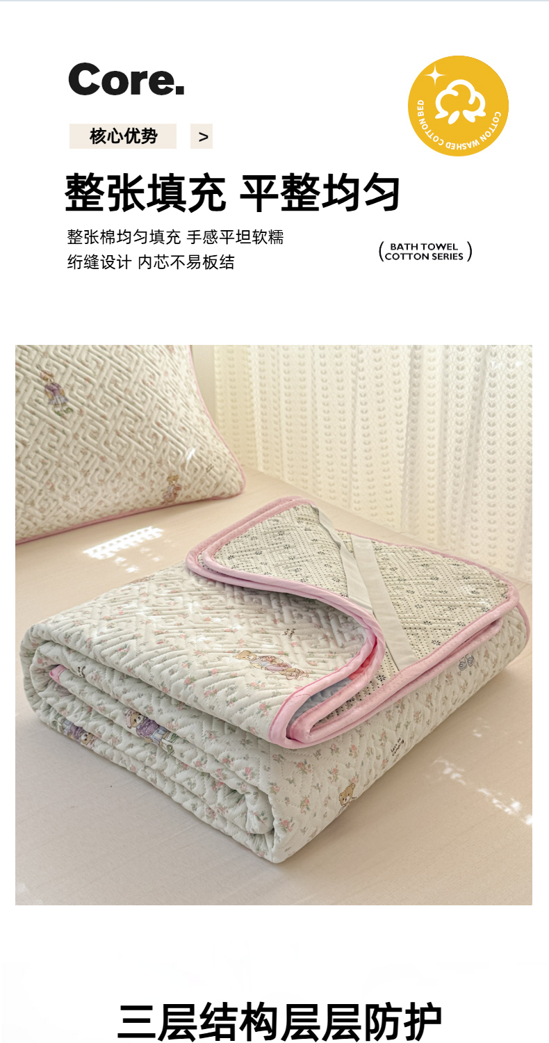 • 91家纺网 家纺一手货源 找家纺 简宜家居(朝初家纺) 2025新款纯棉夹棉床盖学生三件套 花丛中的熊 -平铺床盖