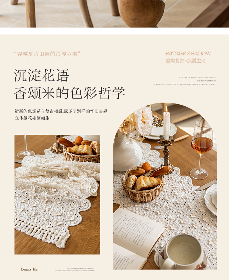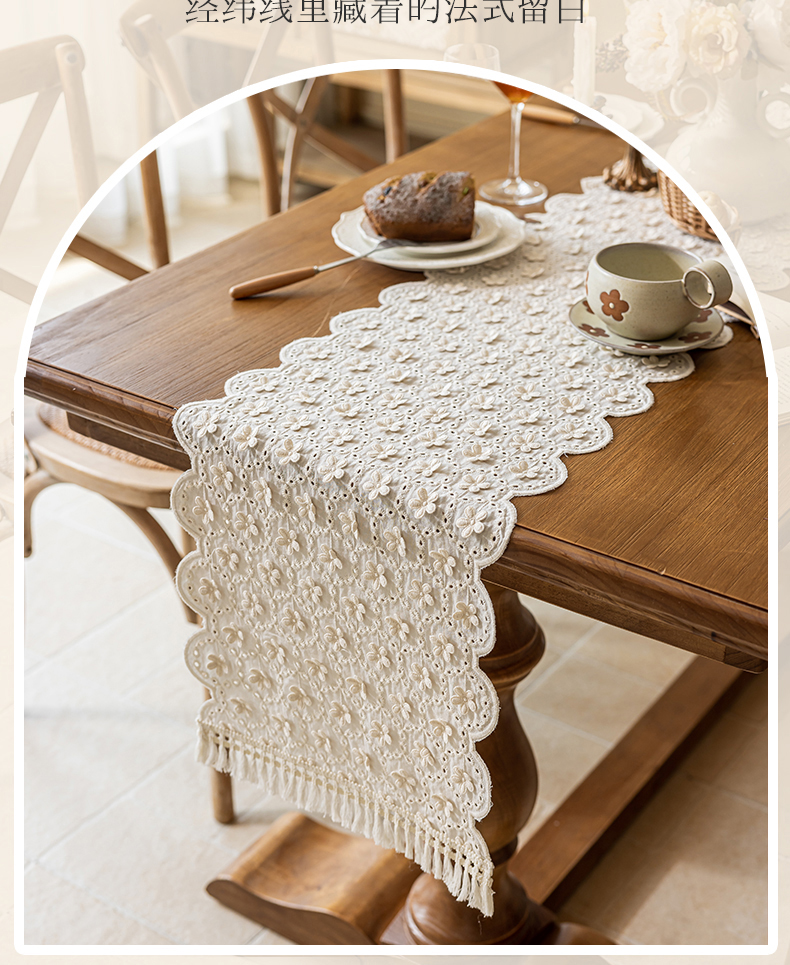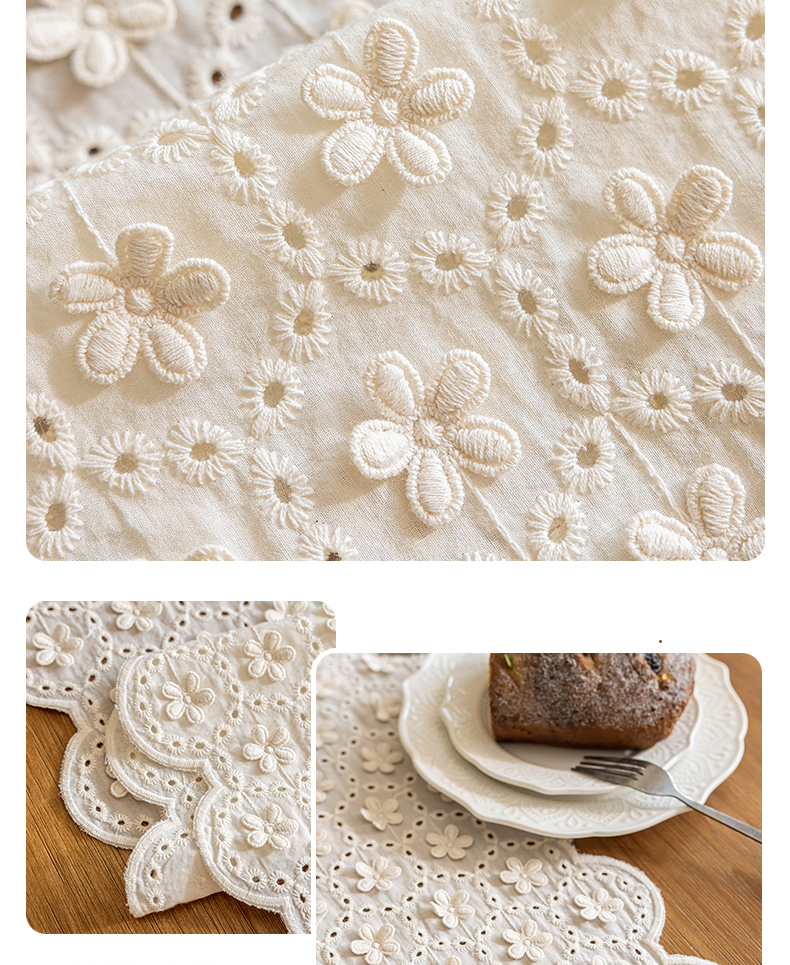 当前位置: 91家纺网 > 商品网购 > 床品定制 > 桌布/桌旗定制定做 > 南通大梧纺织 2025新款全棉纯棉绣花法式复古全棉朵朵桌旗 全棉朵朵 33x300cm