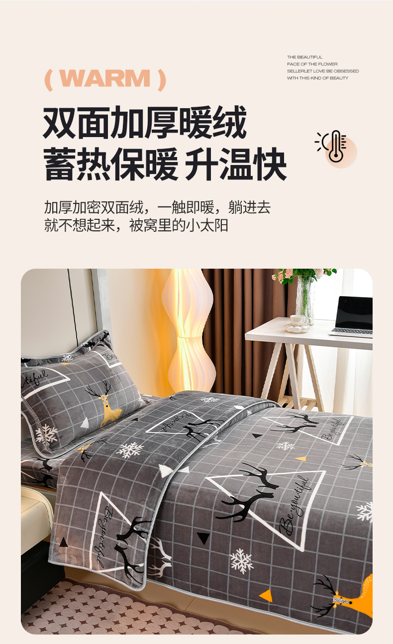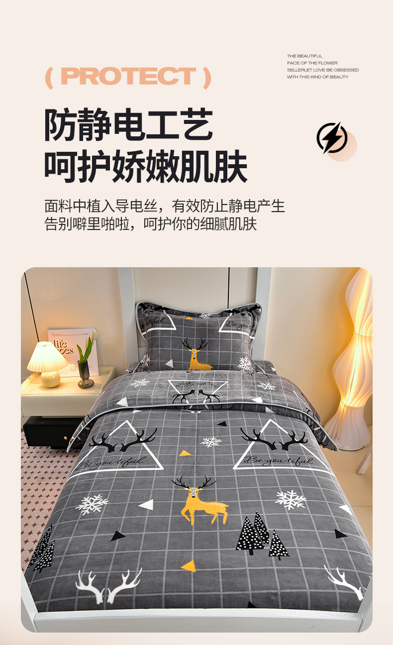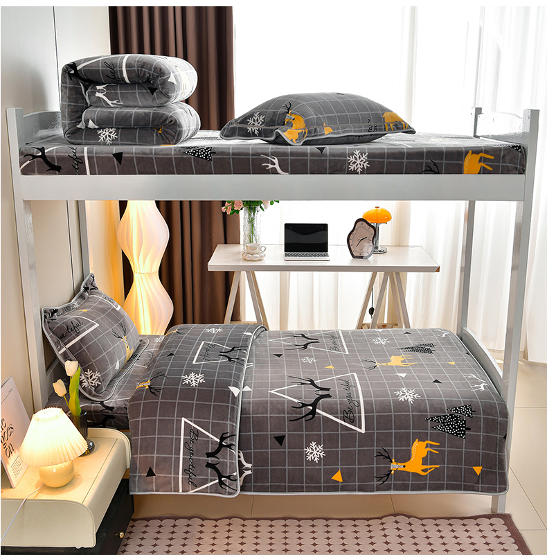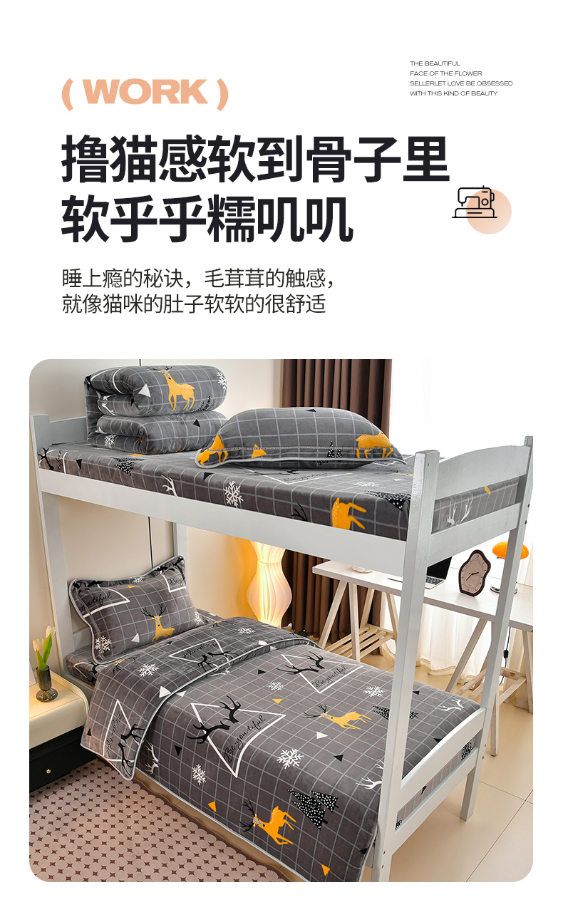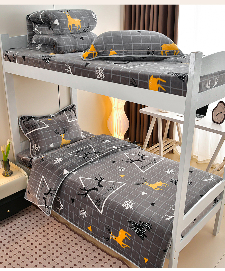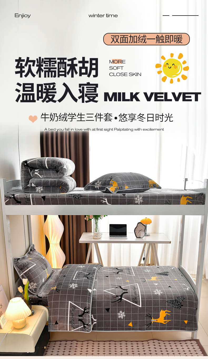 缘莉娜家纺 2025新款牛奶绒印花学生宿舍三件套上下铺三件套 鹿上时空