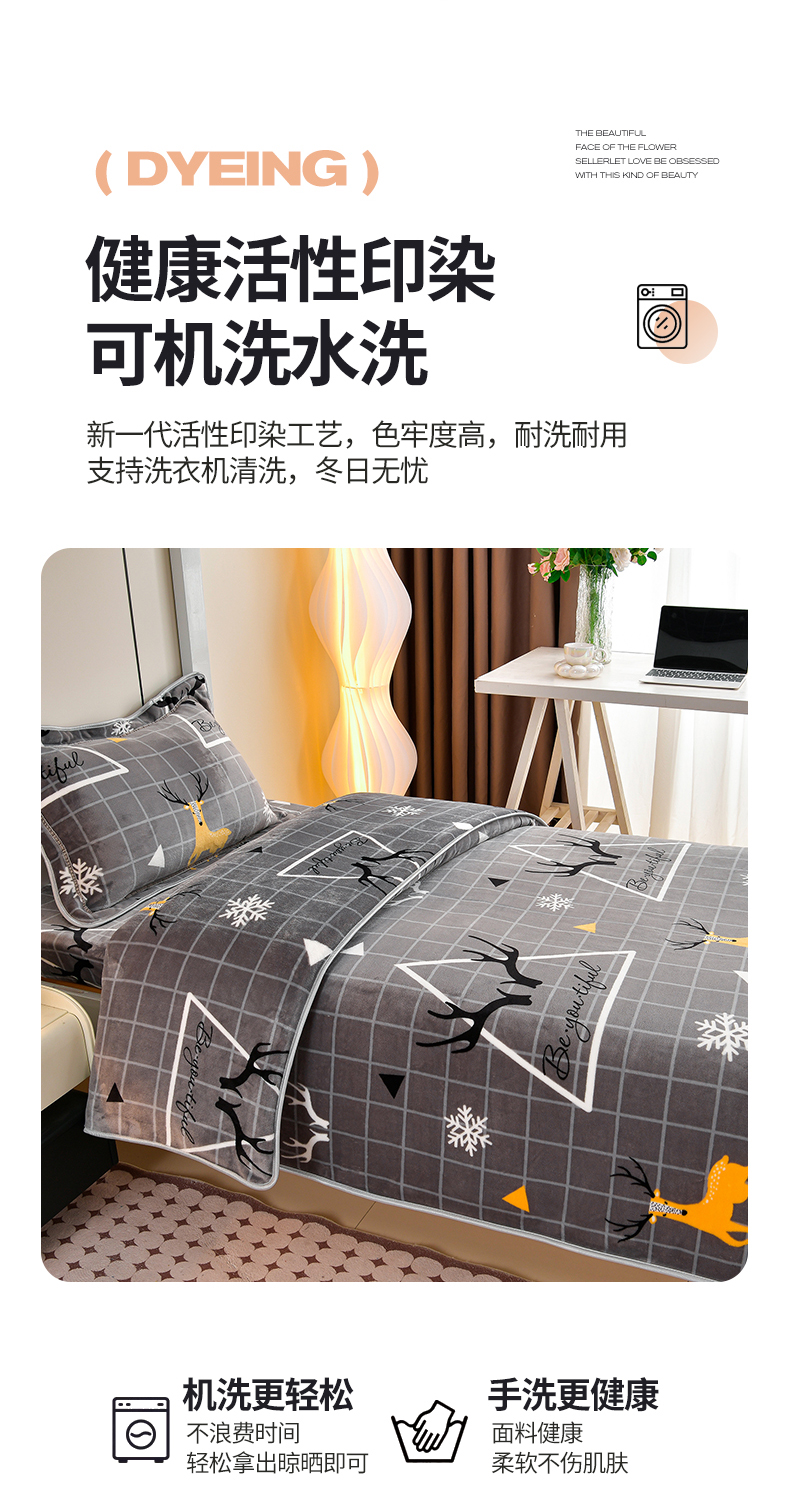 商品名称:缘莉娜家纺 2025新款牛奶绒印花学生宿舍三件套上下铺三件套 鹿上时空