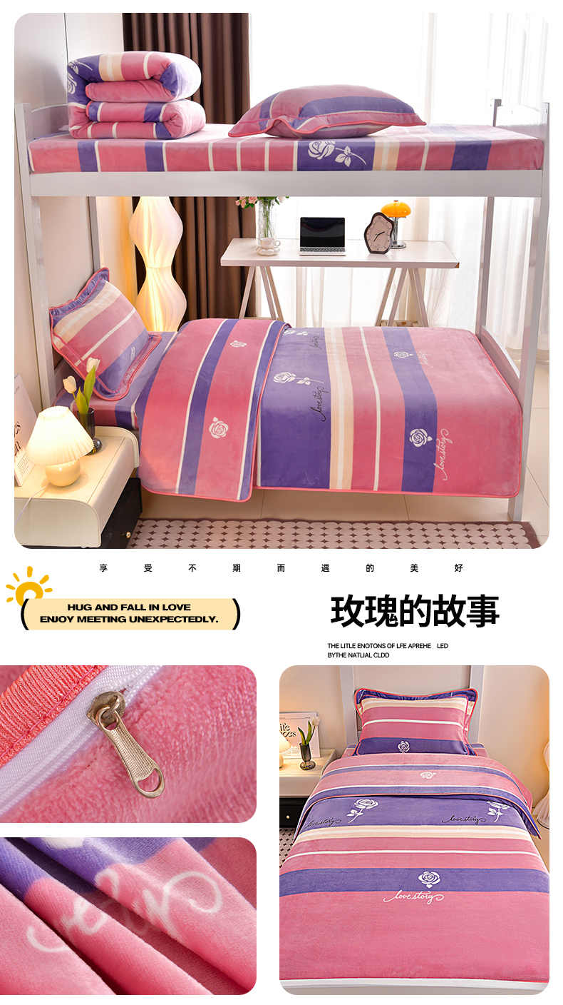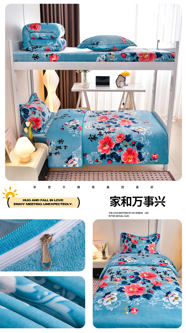 (总)缘莉娜家纺 2025新款牛奶绒印花学生宿舍三件套上下铺三件套,人生格言,致青春,抱抱熊,玫瑰的故事,海阔天空,兔兔乐园,家和万事兴,翩翩起舞,鹿上时空,甜蜜蜜,一路相伴,如花似锦