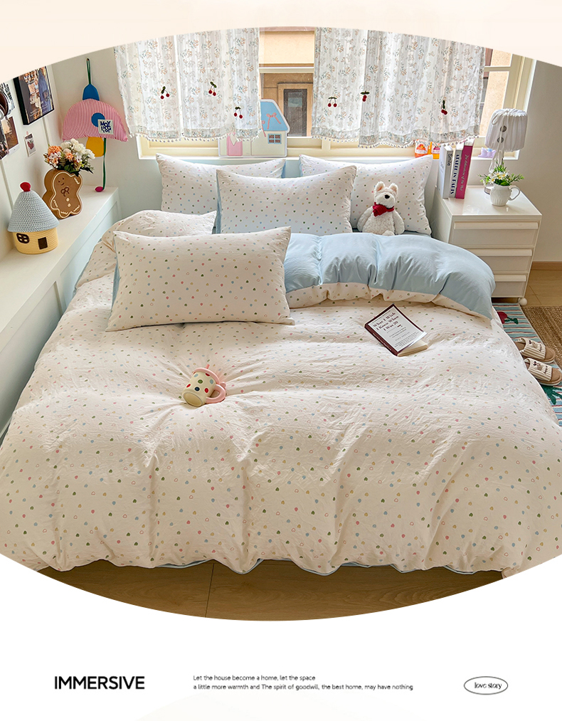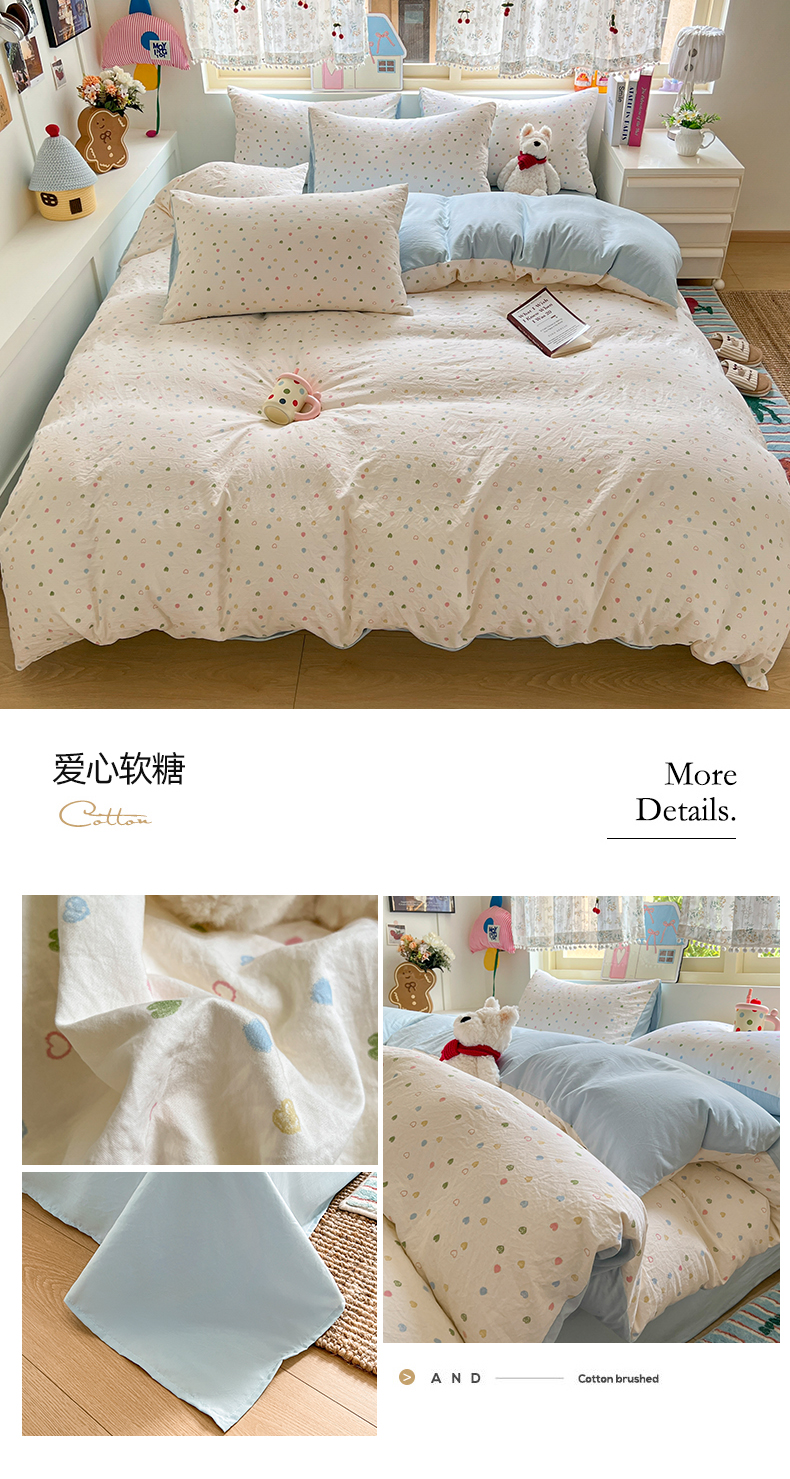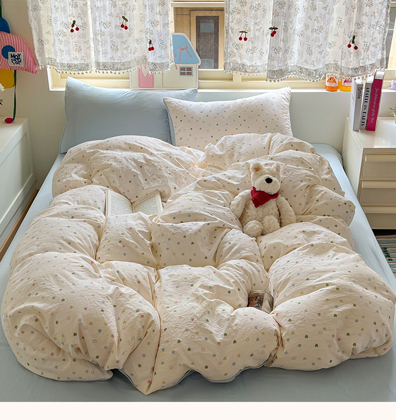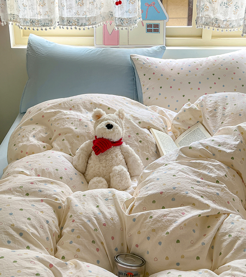 当前位置: 91家纺网 > 商品网购 > 床品套件 > 四件套 > 水洗棉四件套 > 希丞家居 2025新款ins小清新水洗优嘉棉四件套 爱心软糖