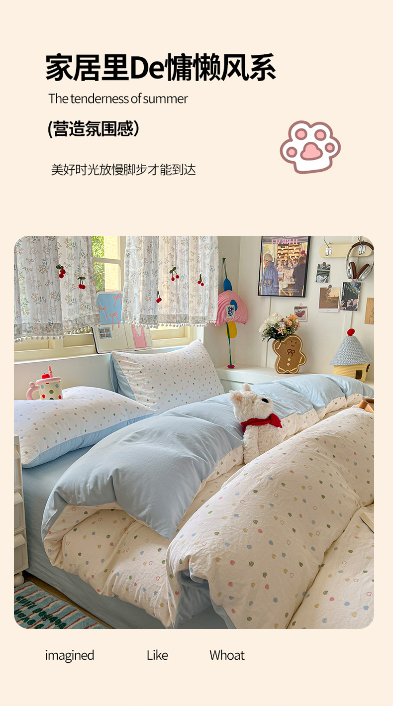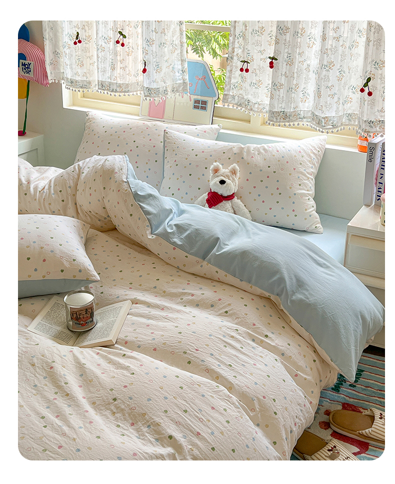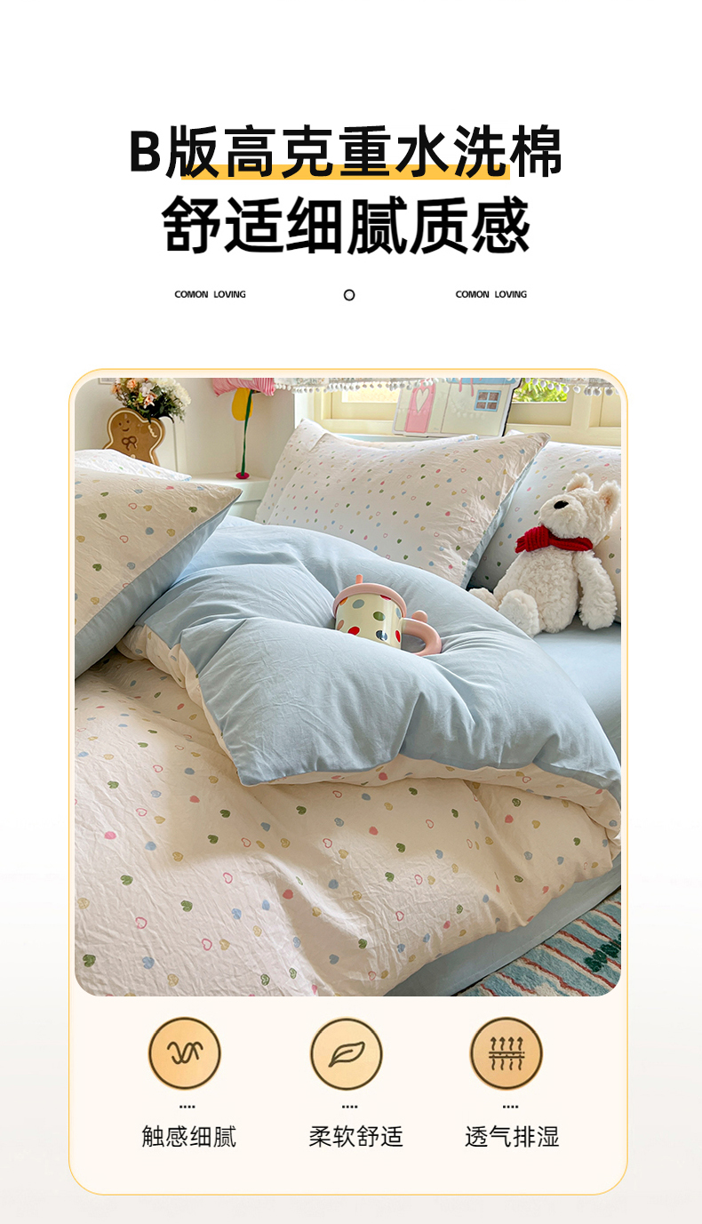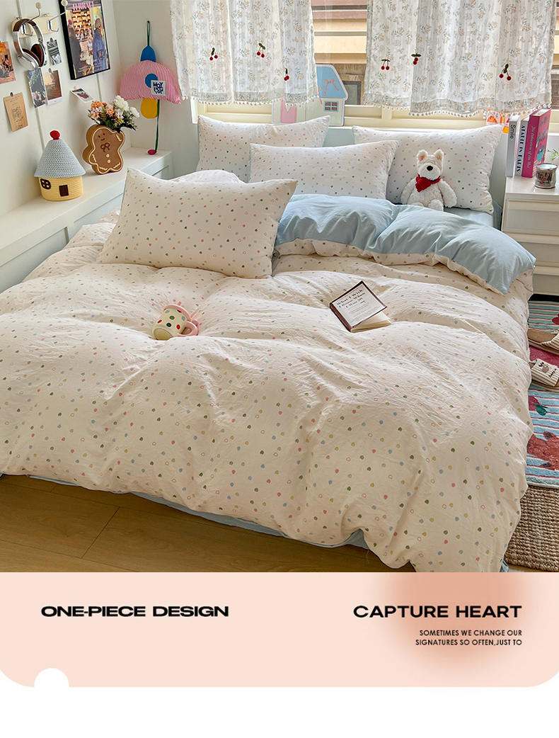 当前位置: 91家纺网 > 商品网购 > 床品套件 > 四件套 > 水洗棉四件套 > 希丞家居 2025新款ins小清新水洗优嘉棉四件套 爱心软糖