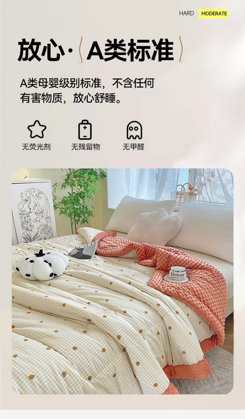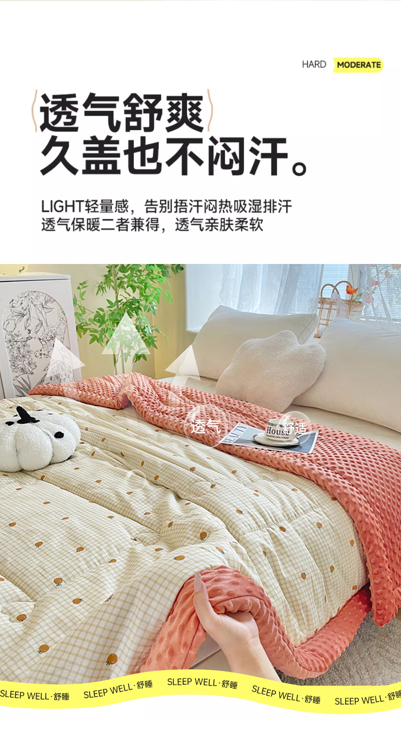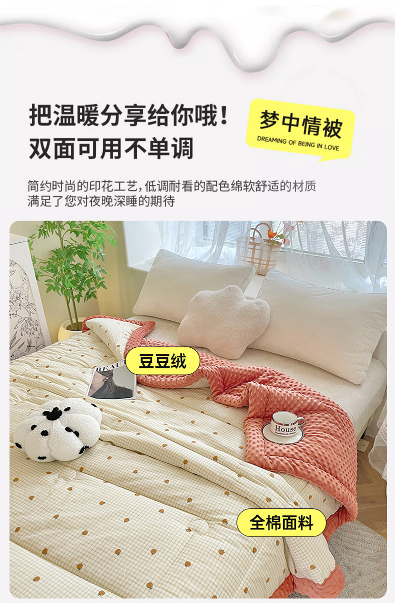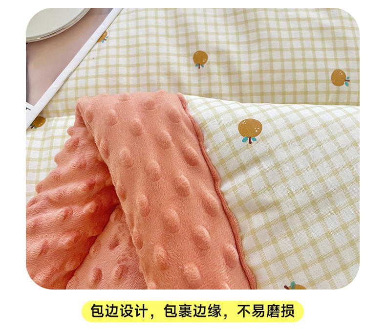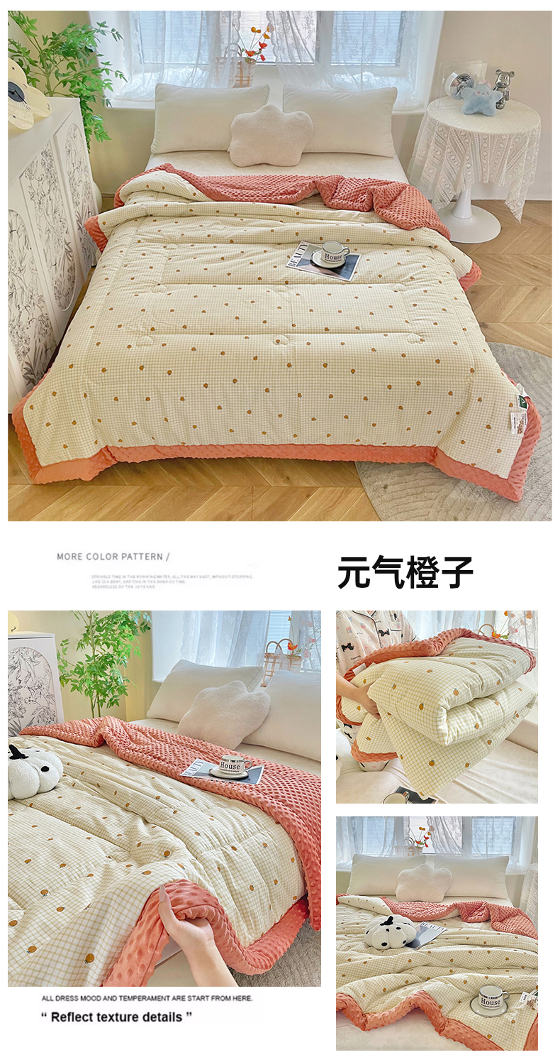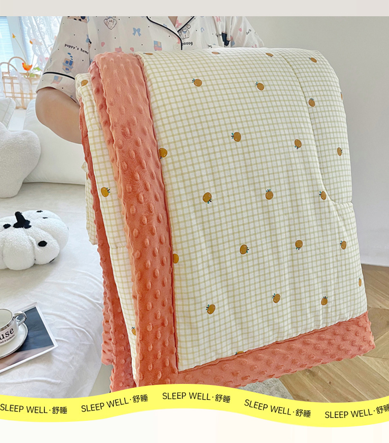 商品名称:芙绣2025新款A类全棉印花豆豆绒被空调被豆豆毯学生单品居家办公室 元气橙子