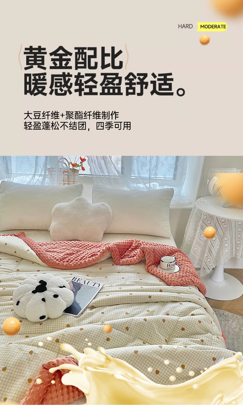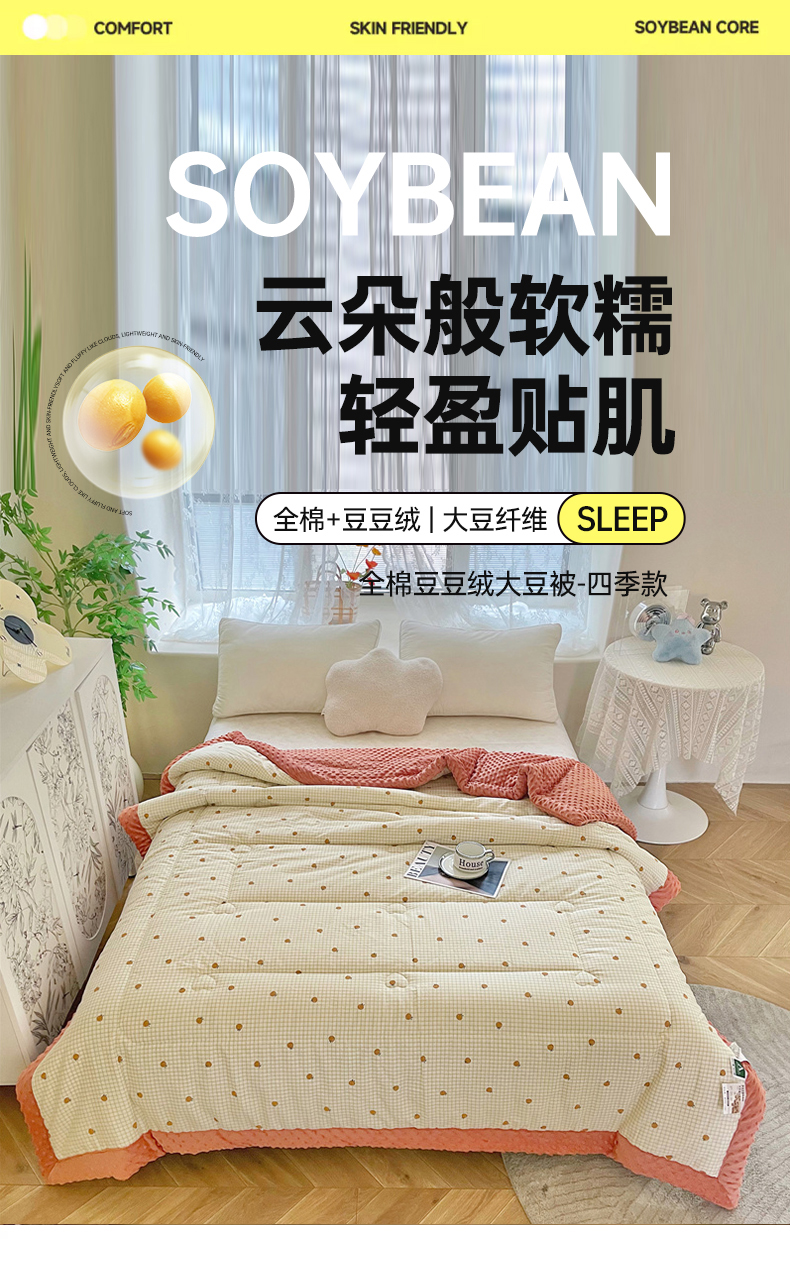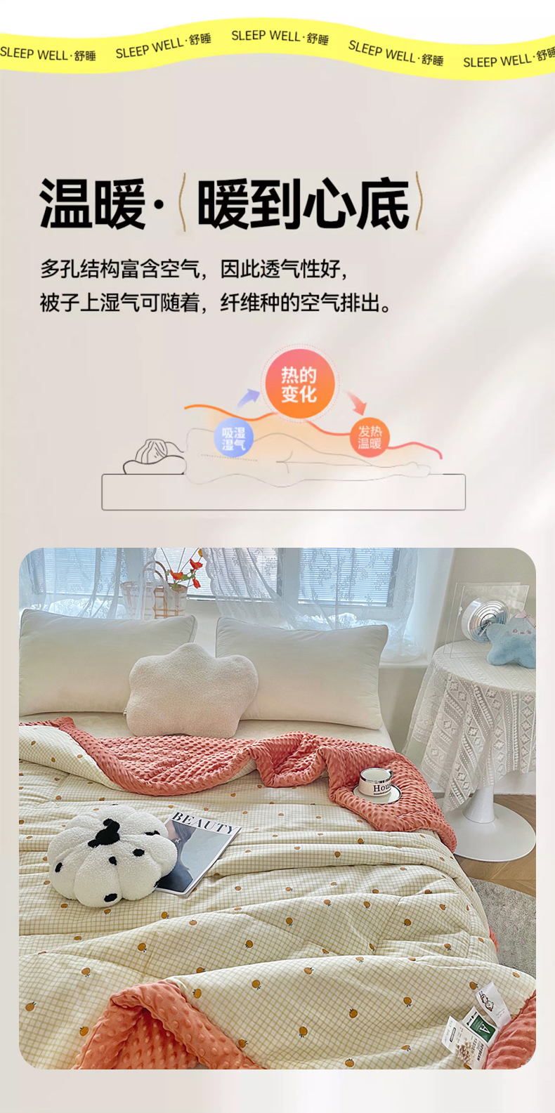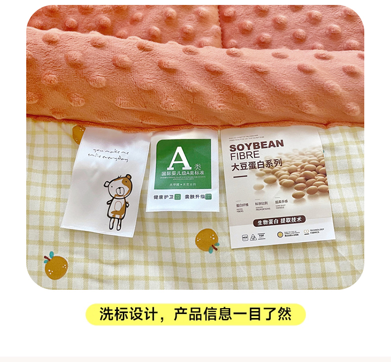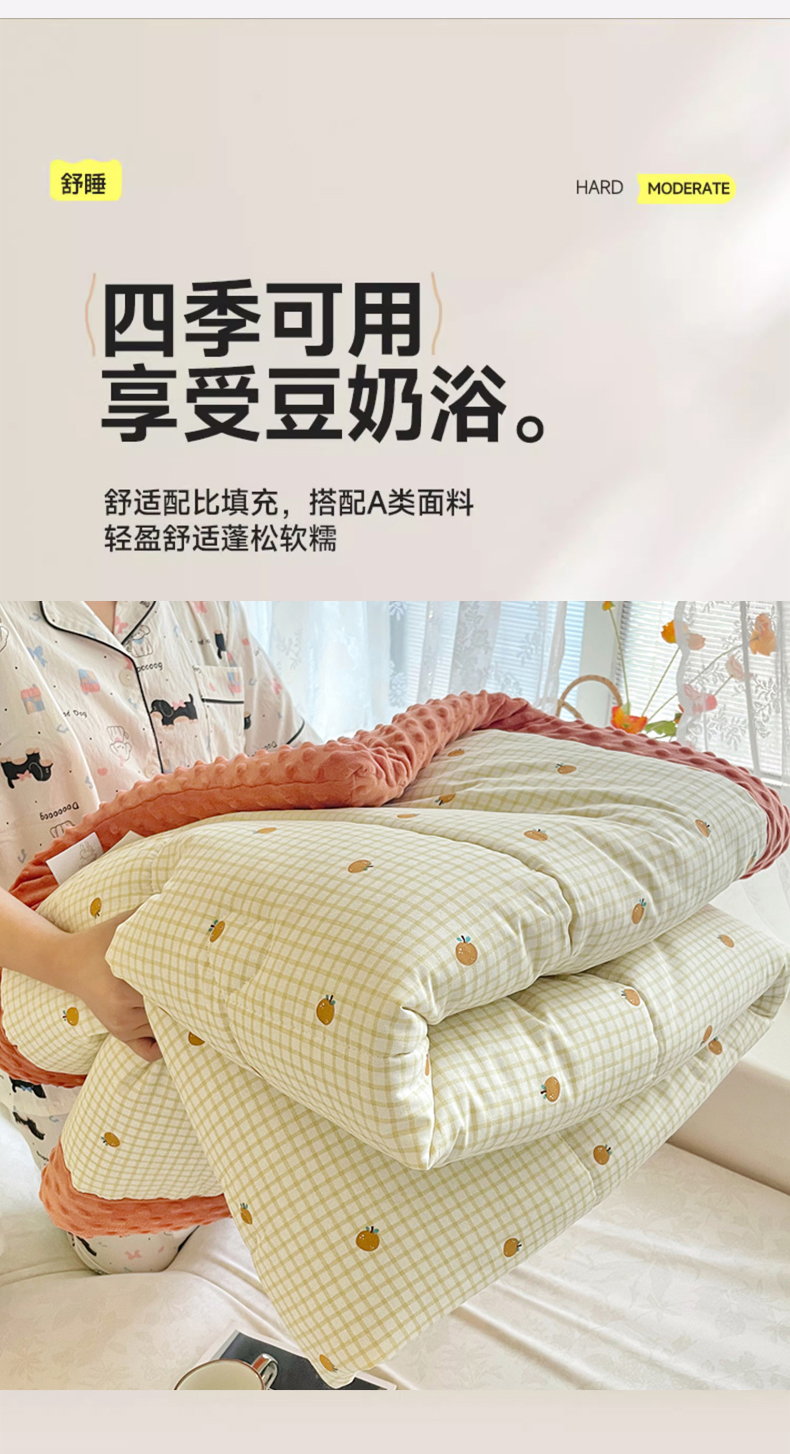 商品名称:芙绣2025新款A类全棉印花豆豆绒被空调被豆豆毯学生单品居家办公室 元气橙子