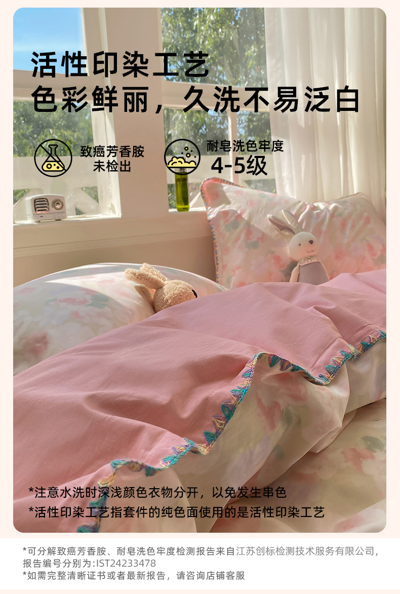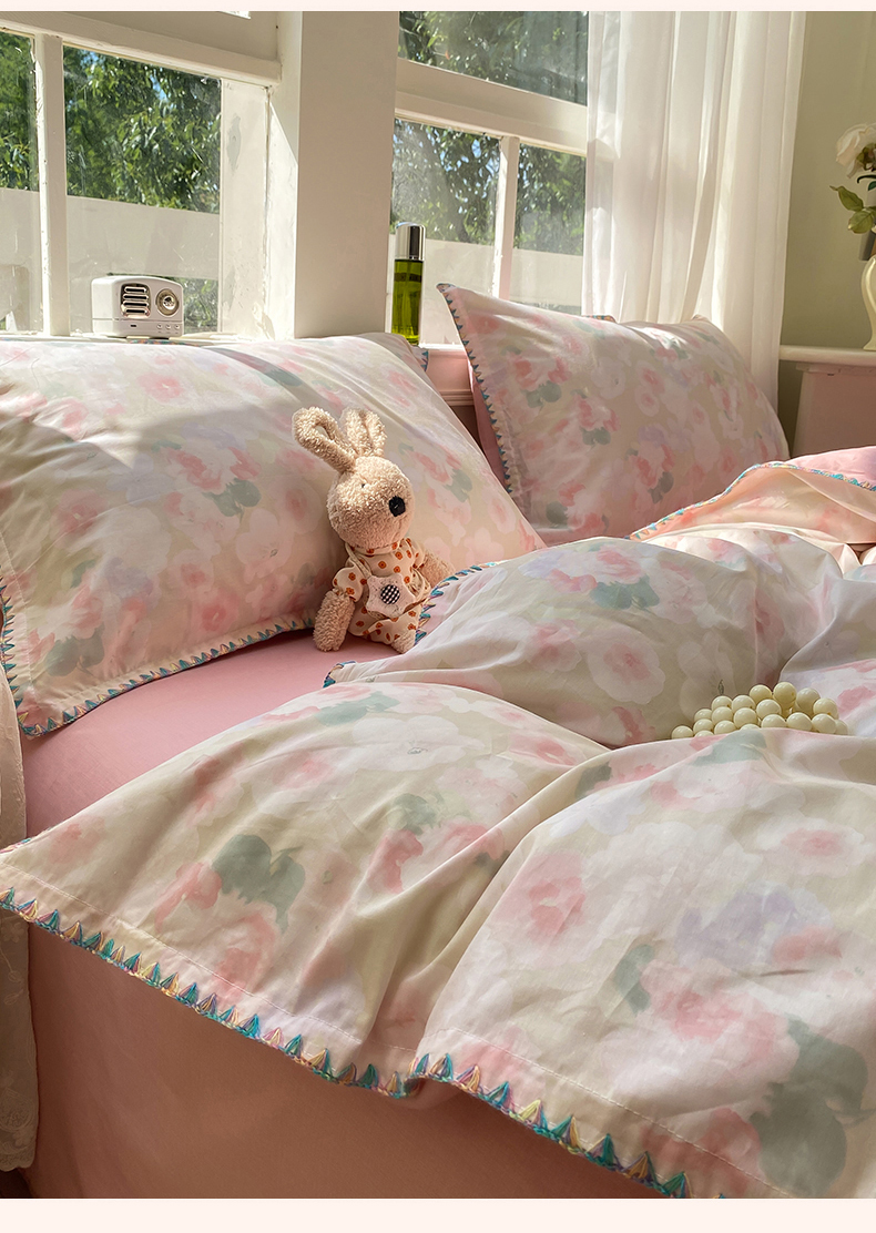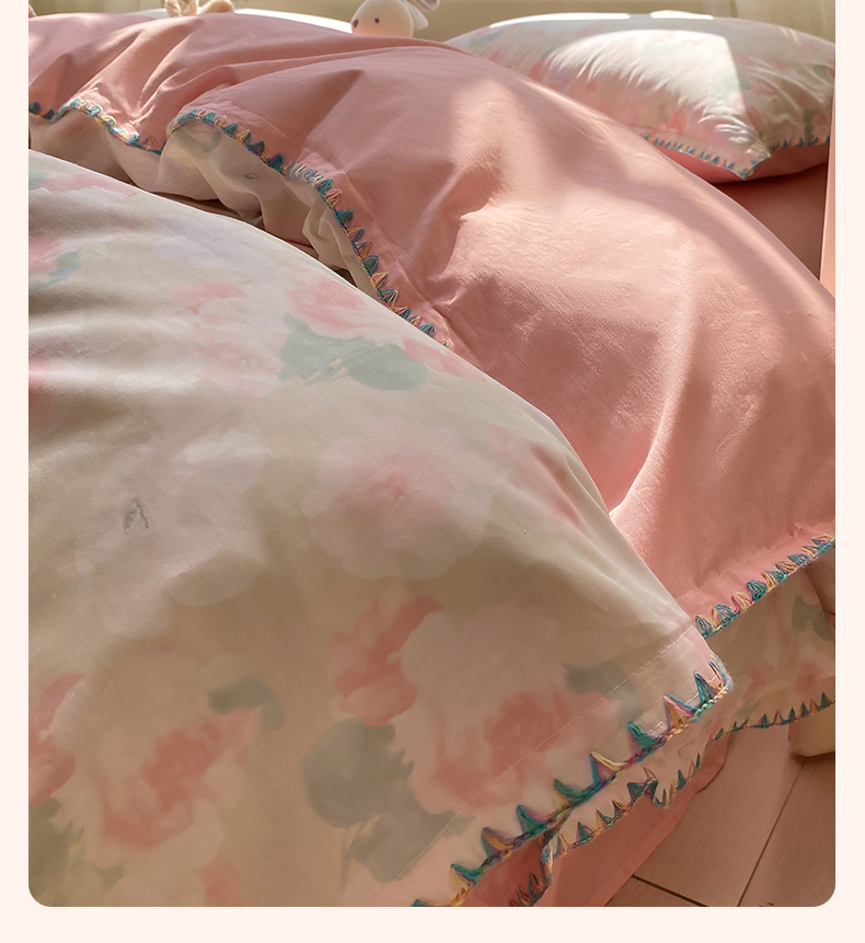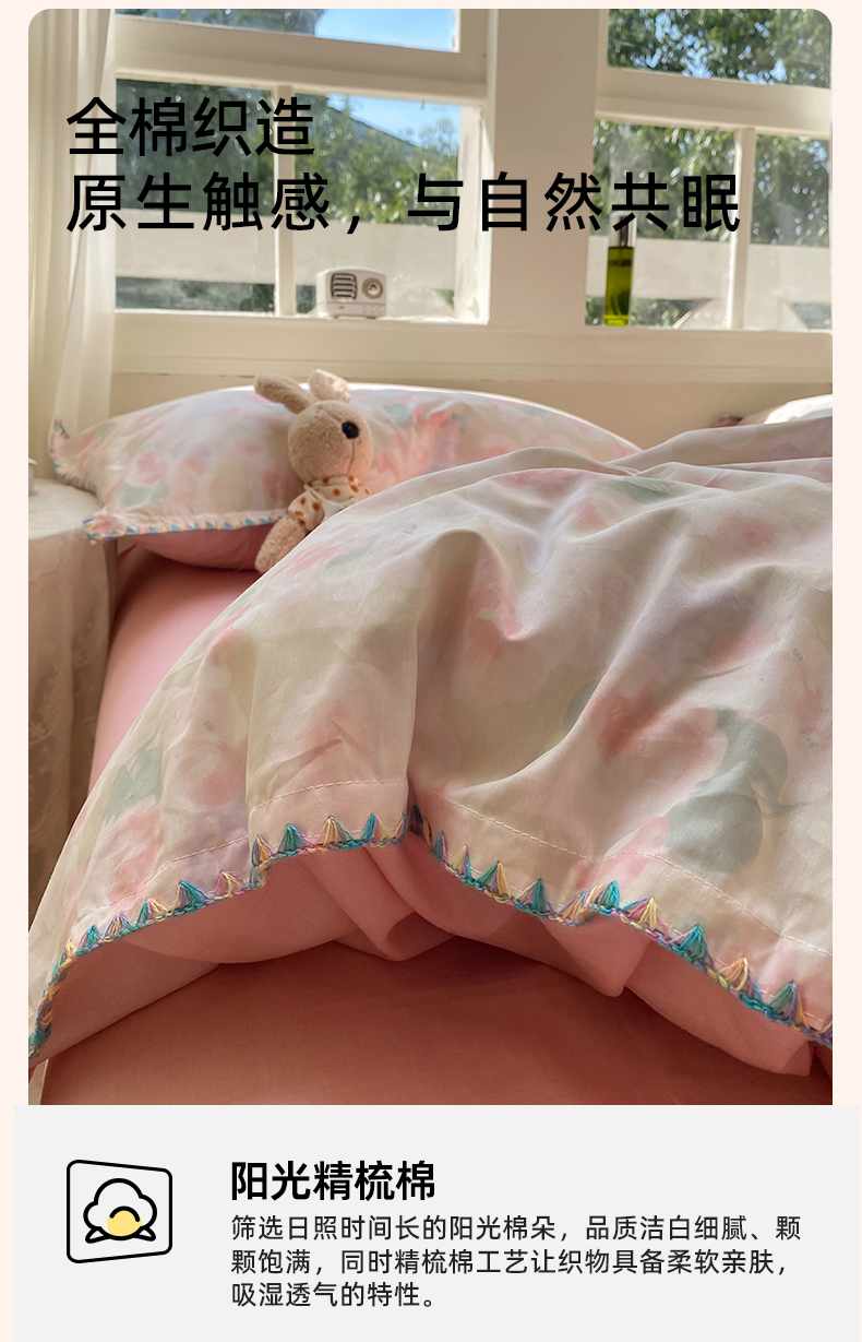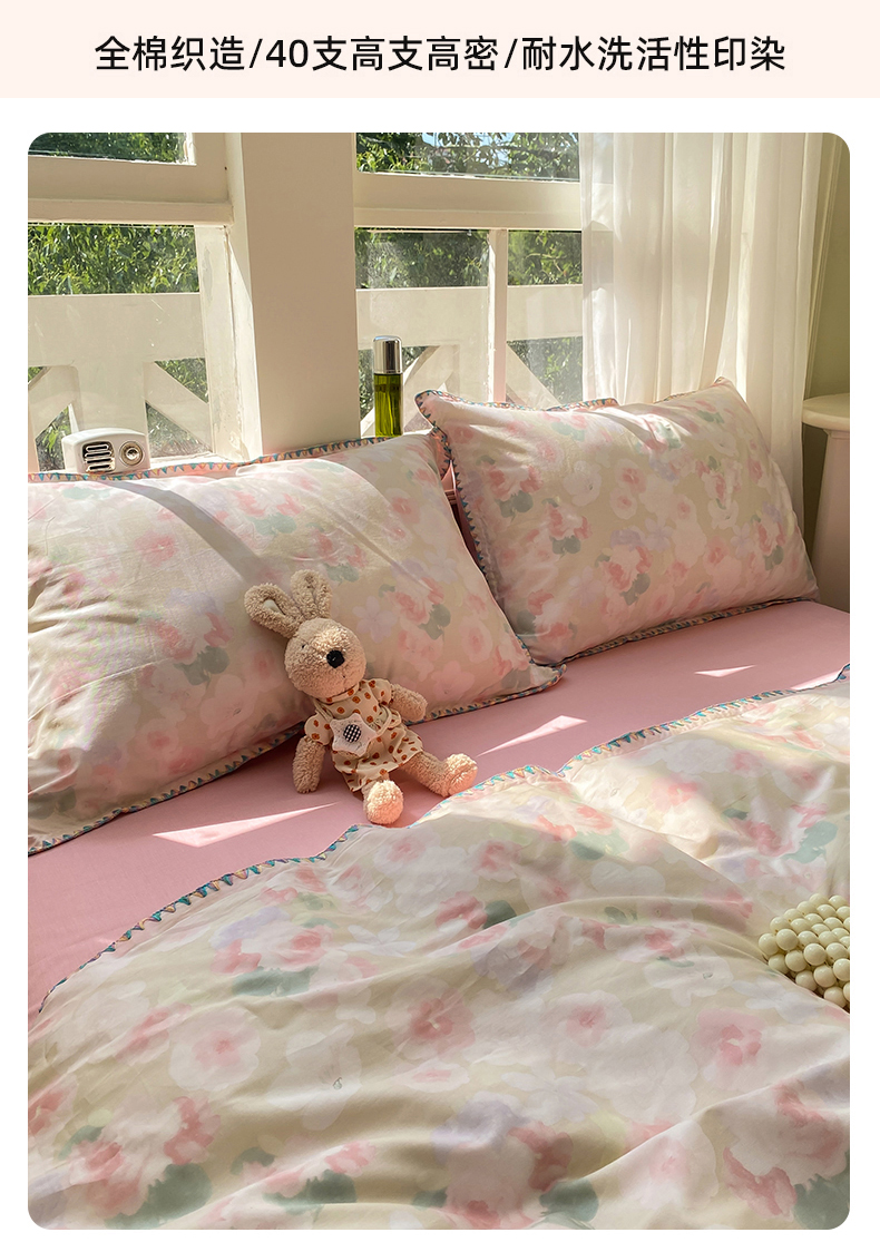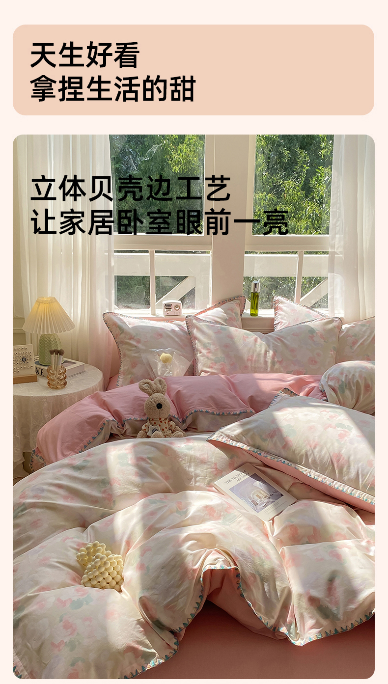 浮光家居 2025新款全棉纯棉贝壳边四件套 花束漫,花束漫