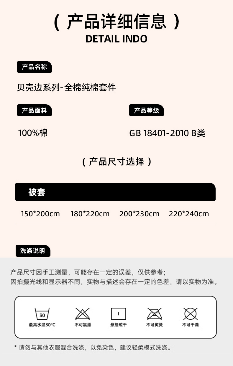 商品名称:浮光家居 2025新款全棉贝壳边系列单被套 浪漫庄园