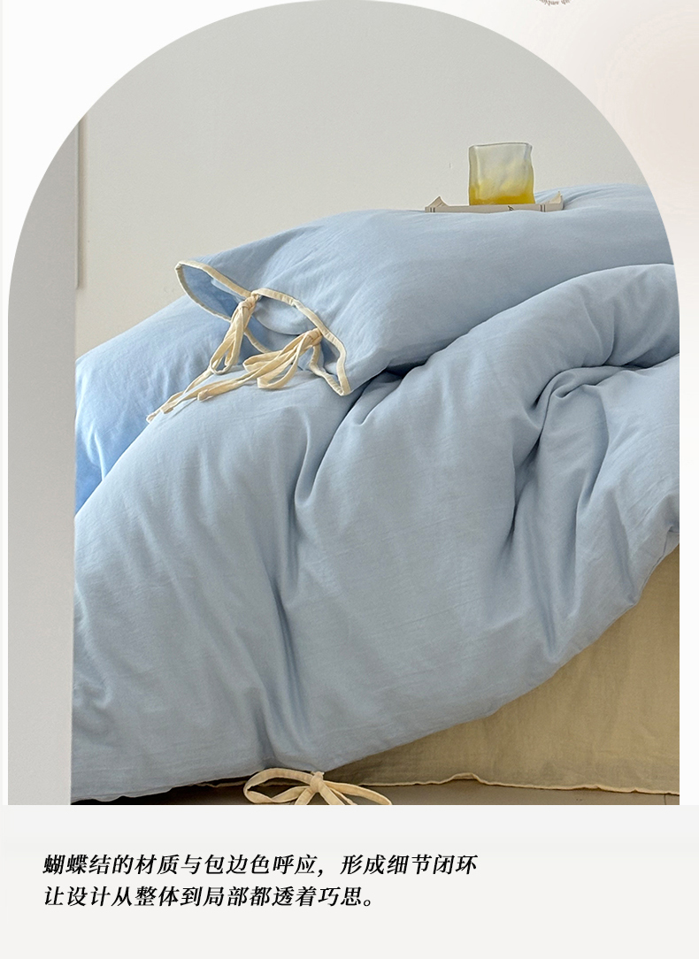 当前位置: 91家纺网 > 商品网购 > 床品套件 > 四件套 > 其它四件套 > FORTWO家纺原创设计(FOR TWO家纺) 2025新款双层纱撞色包边蝴蝶结款四件套-海盐 海盐-水蓝