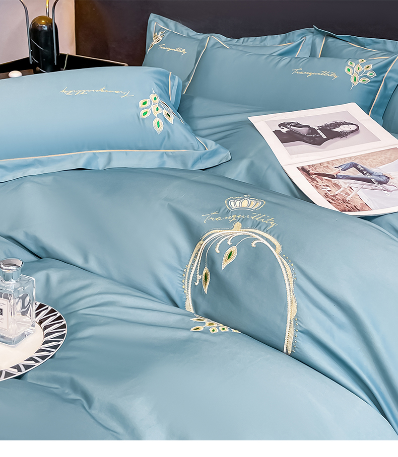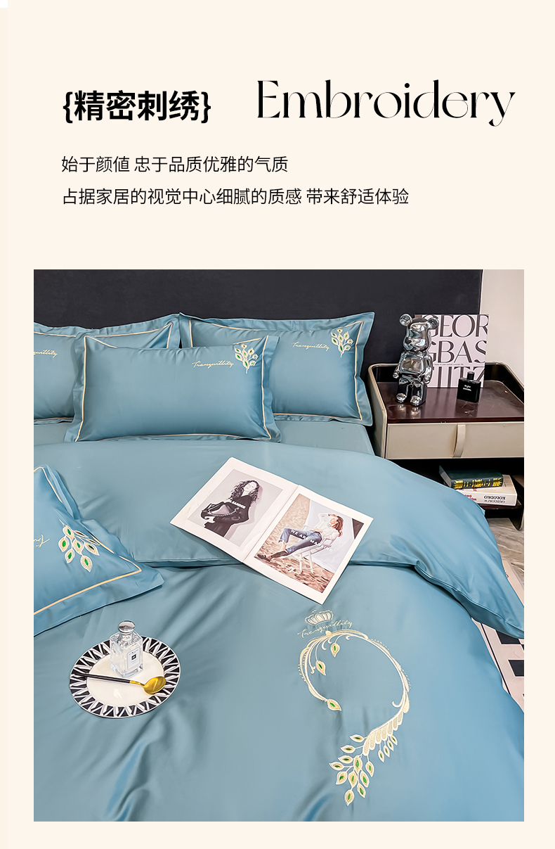 艾迪尚家纺 2025新款120支刺绣长绒棉四六件套(新拍)-单被套 孔雀-月光蓝