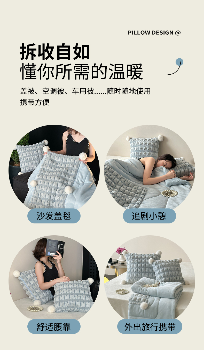 (总)多米家居 2025新款暖绒多功能剪花蝶梦抱枕被系列,福叠-蓝,福叠-粉,福叠-咖,福叠-奶白,组合