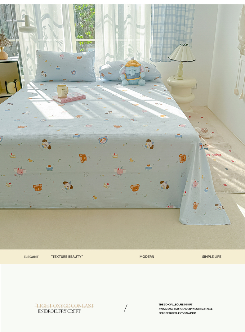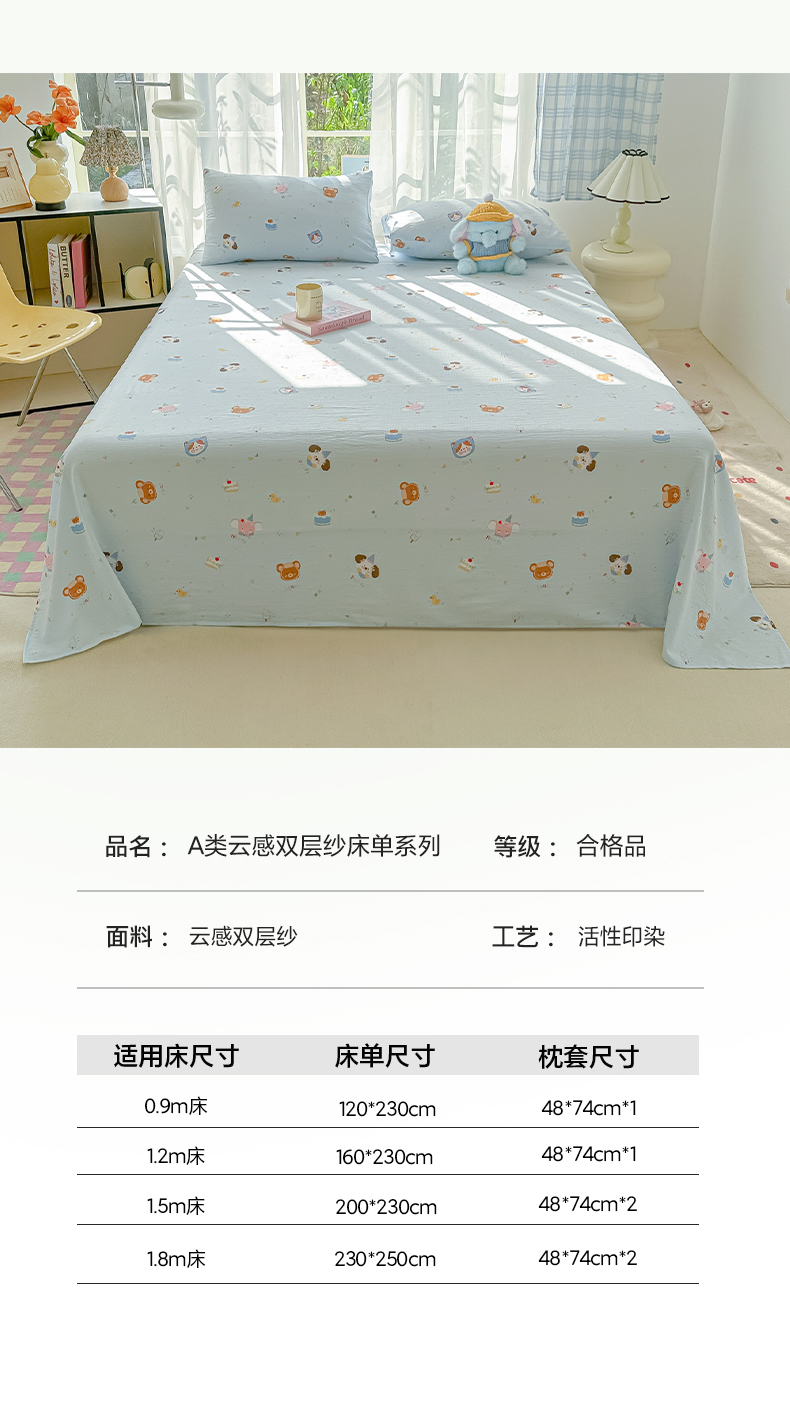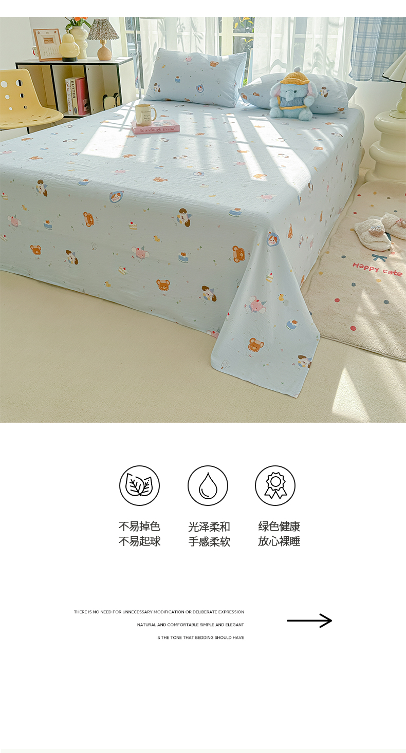 • 91家纺网 家纺一手货源 找家纺 韩巢家纺 2025新款双层纱儿童卡通风床单寝室单人学生宿舍单床单床单单件单品床单 生日宴会兰