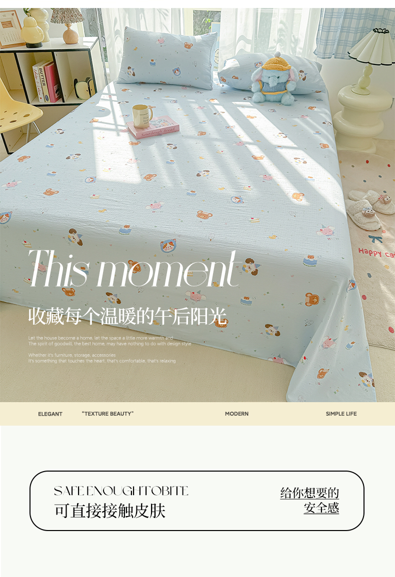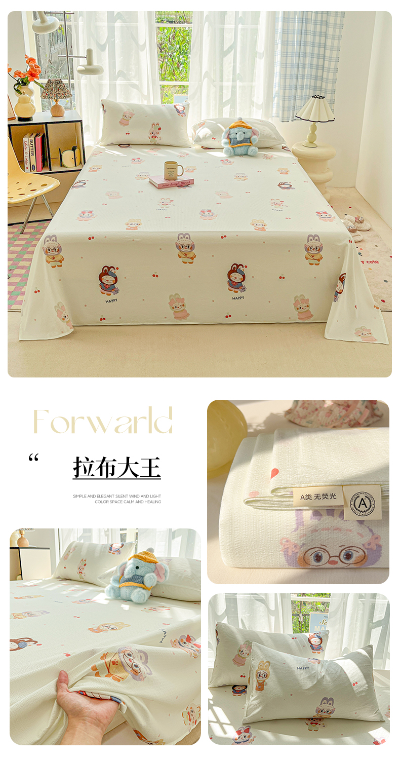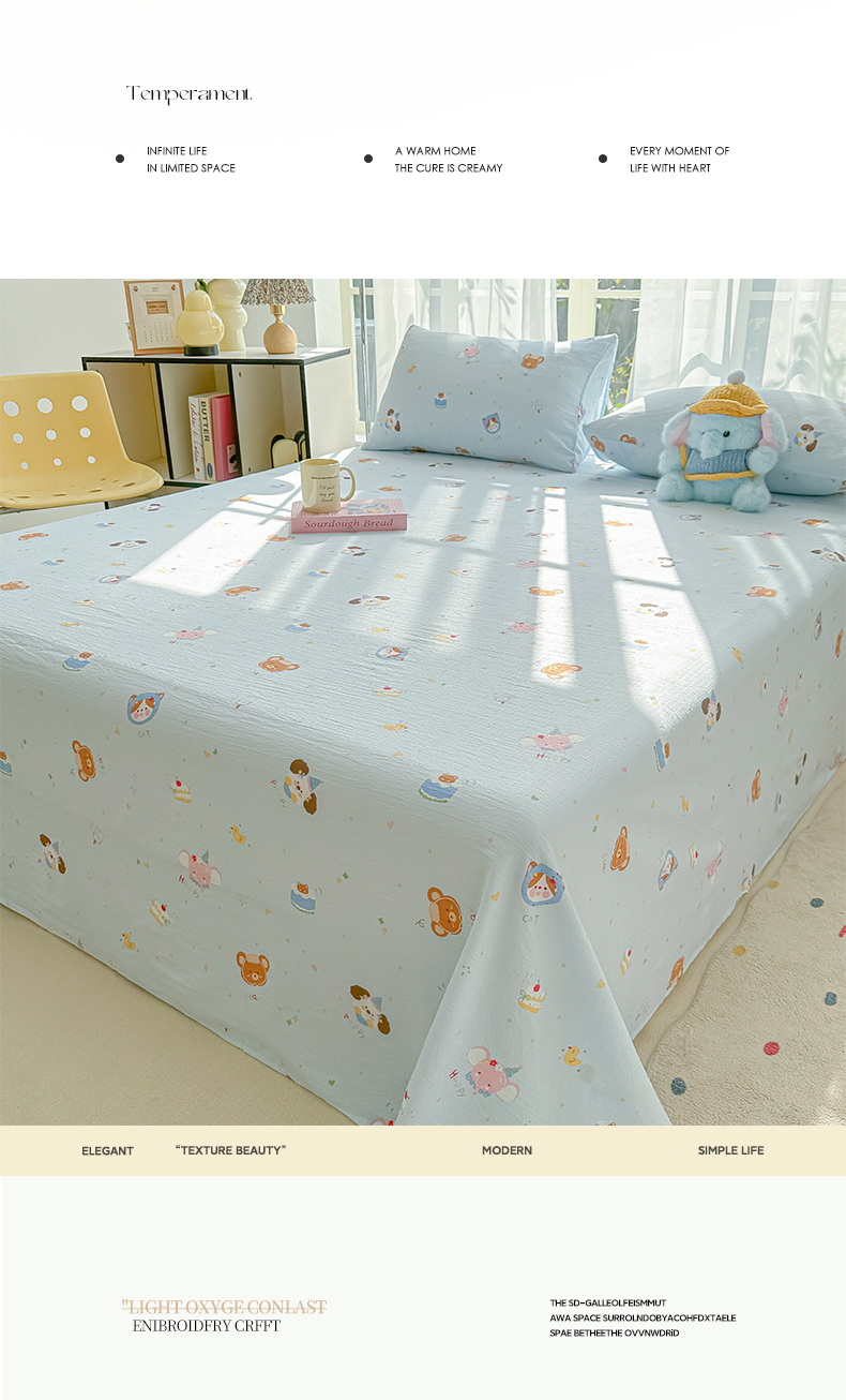 • 91家纺网 家纺一手货源 找家纺 韩巢家纺 2025新款双层纱儿童卡通风床单寝室单人学生宿舍单床单床单单件单品床单 生日宴会兰