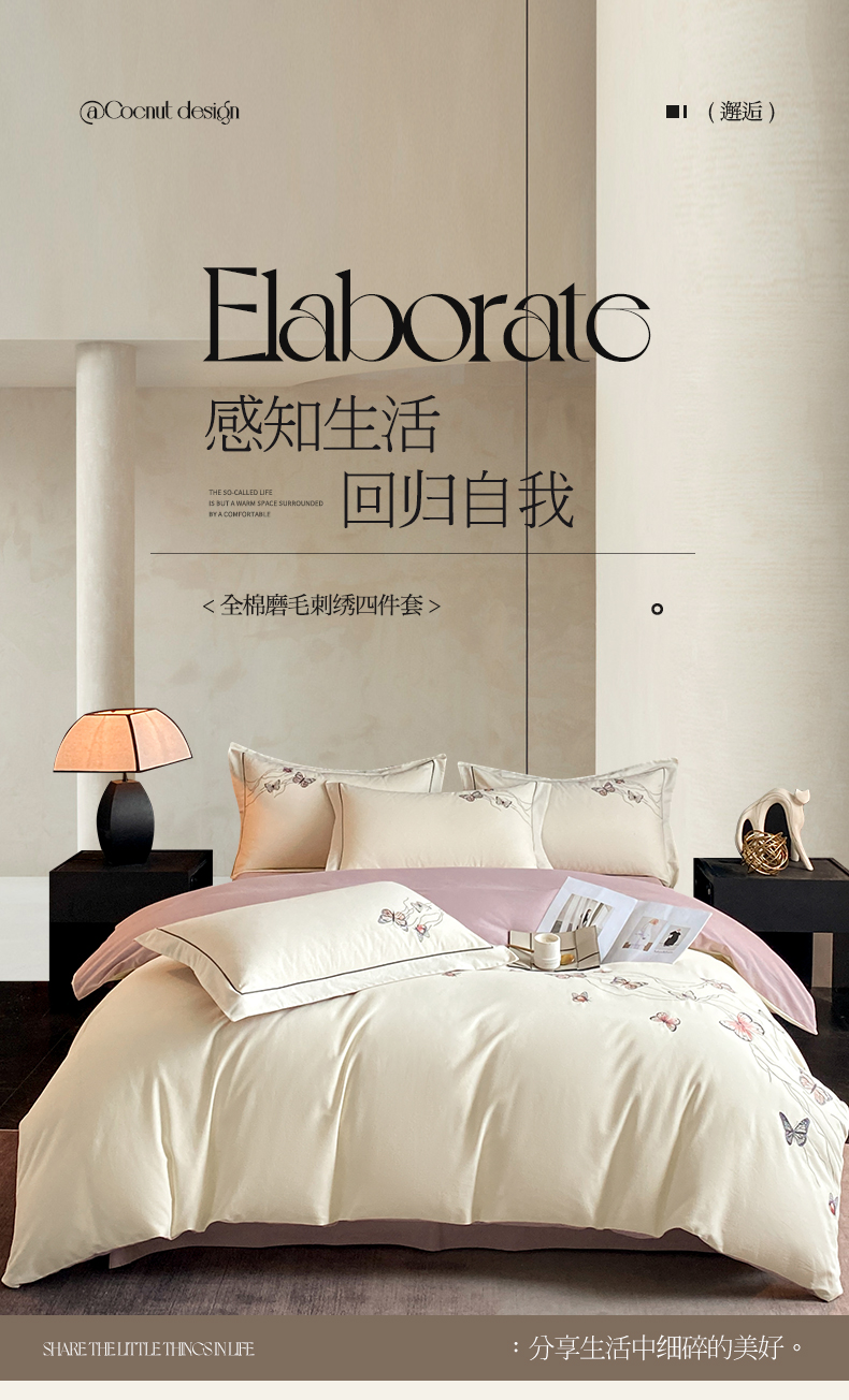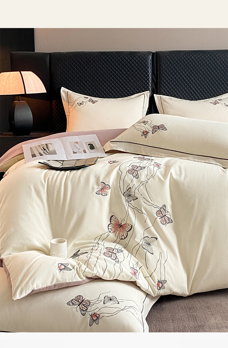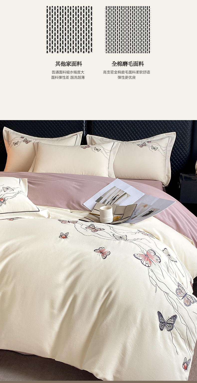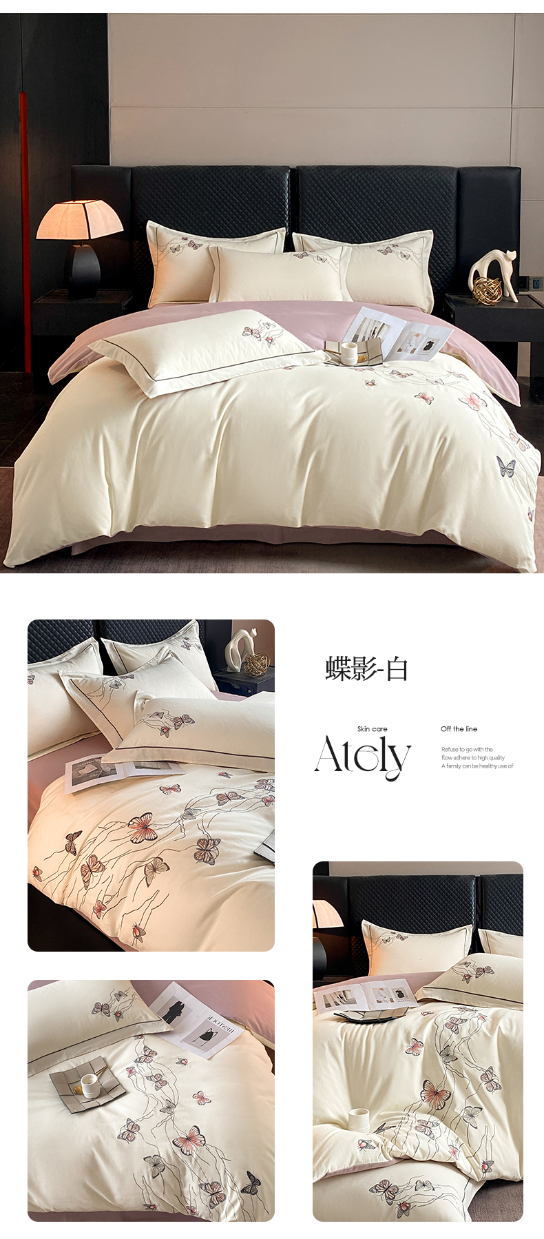 (总)涵宸家纺 2025新款全棉磨毛刺绣四件套系列-花蝴蝶,花蝴蝶-灰,花蝴蝶-奶白,花蝴蝶-浅粉