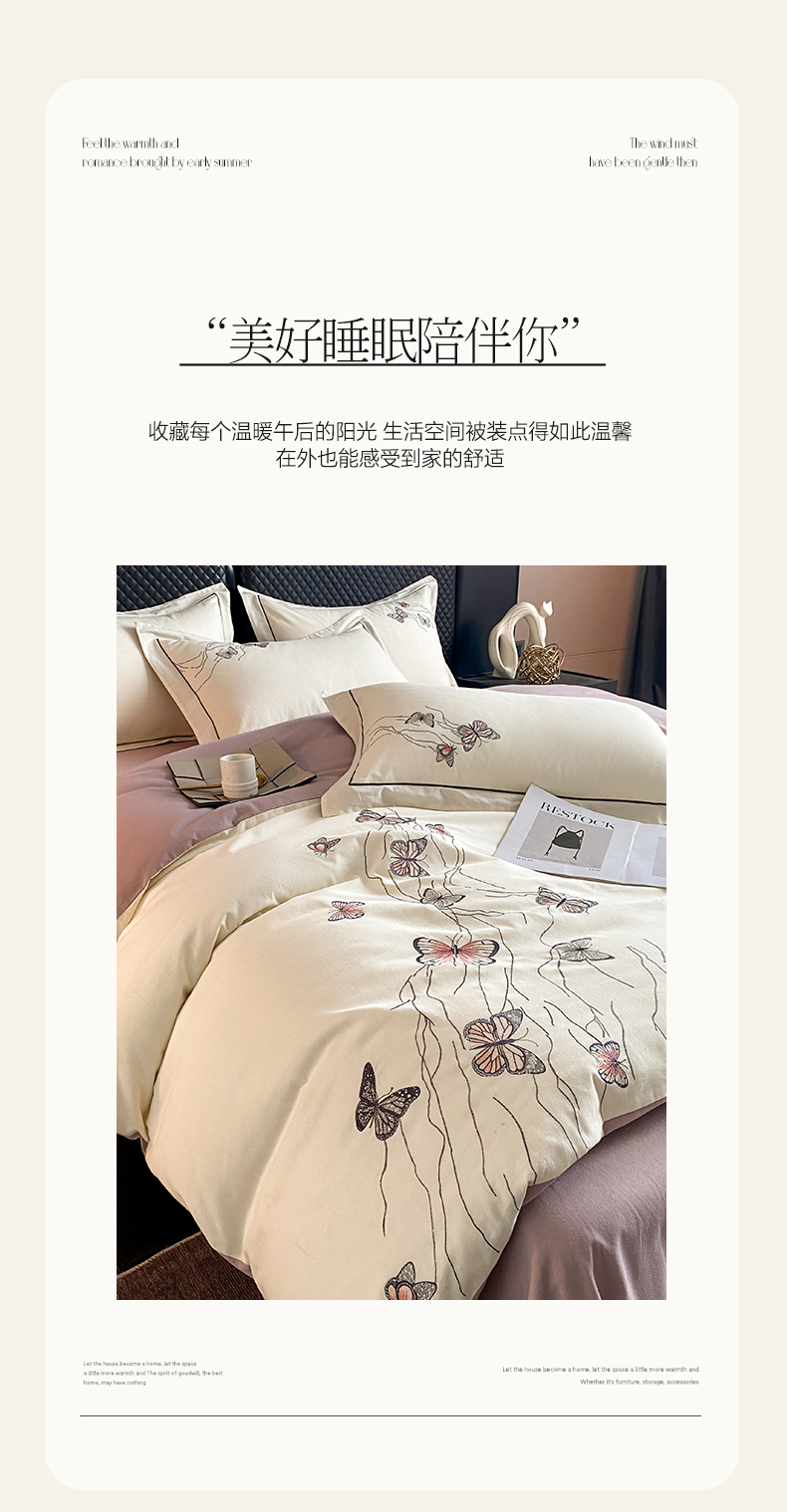 商品名称:(总)涵宸家纺 2025新款全棉磨毛刺绣四件套系列-蝶影