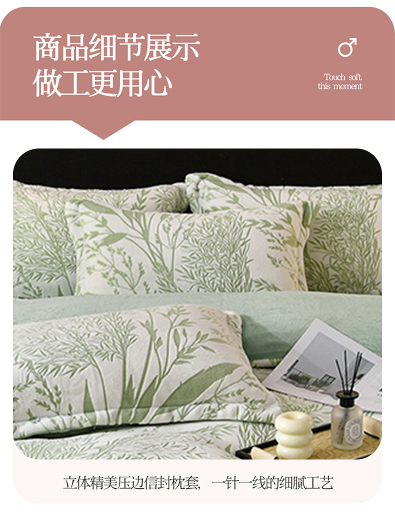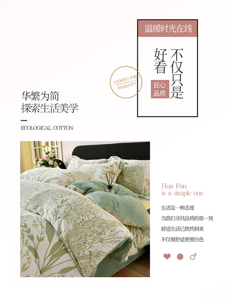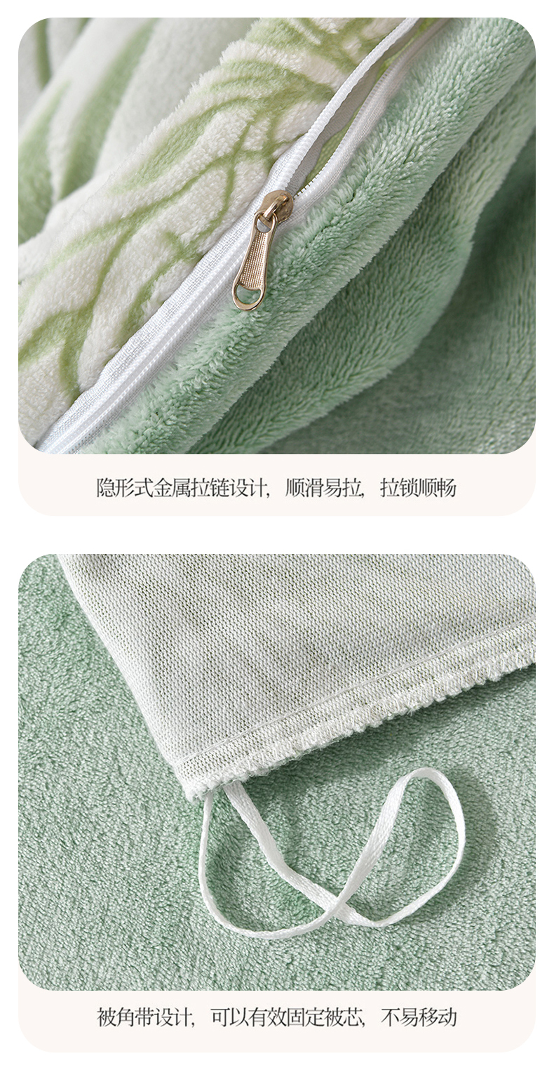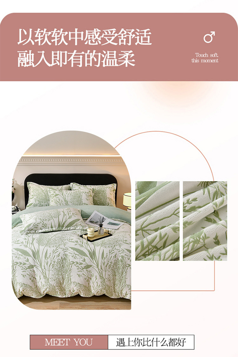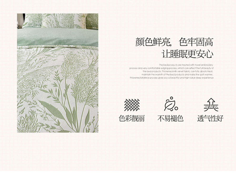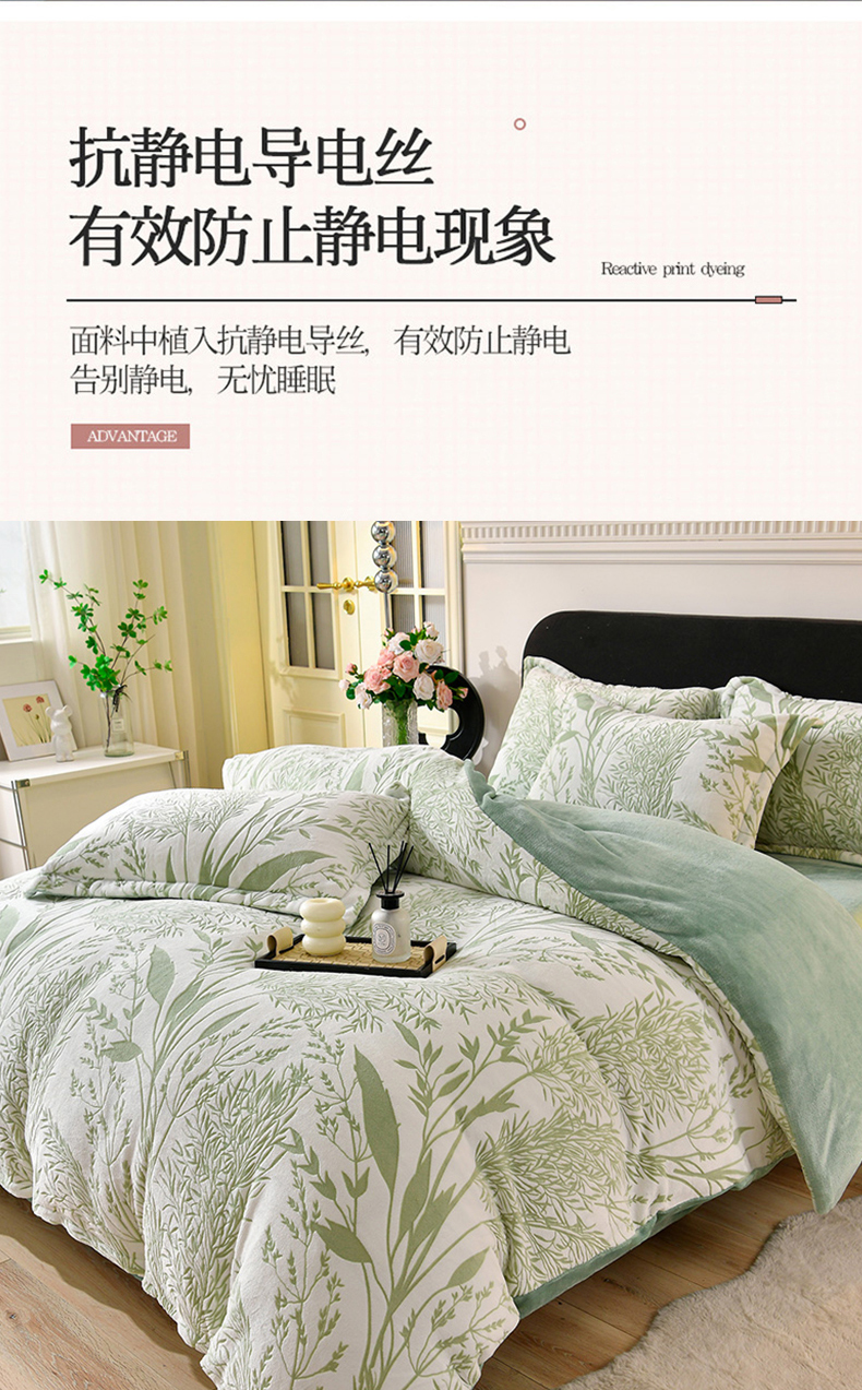 商品名称:梦之星 2025新款8斤重牛奶绒6D雕花绒四件套法莱水晶金貂 摇曳-绿