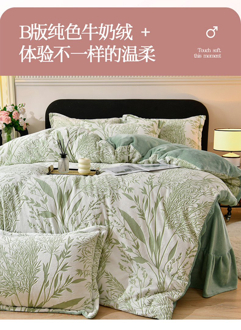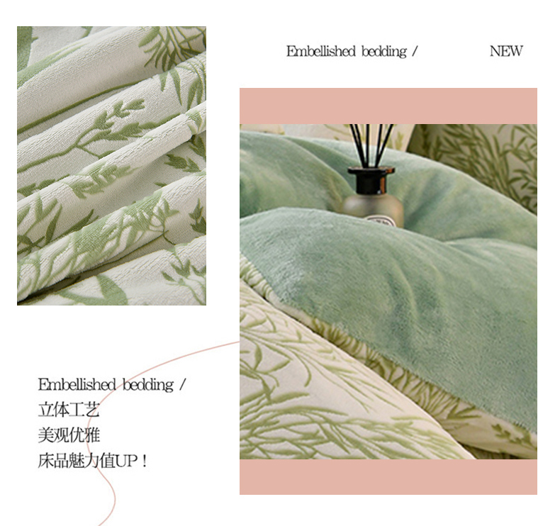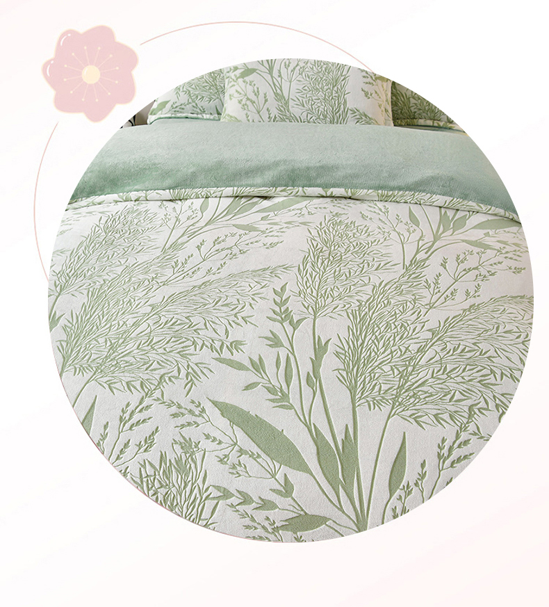 梦之星 2025新款8斤重牛奶绒6D雕花绒四件套法莱水晶金貂 摇曳-绿