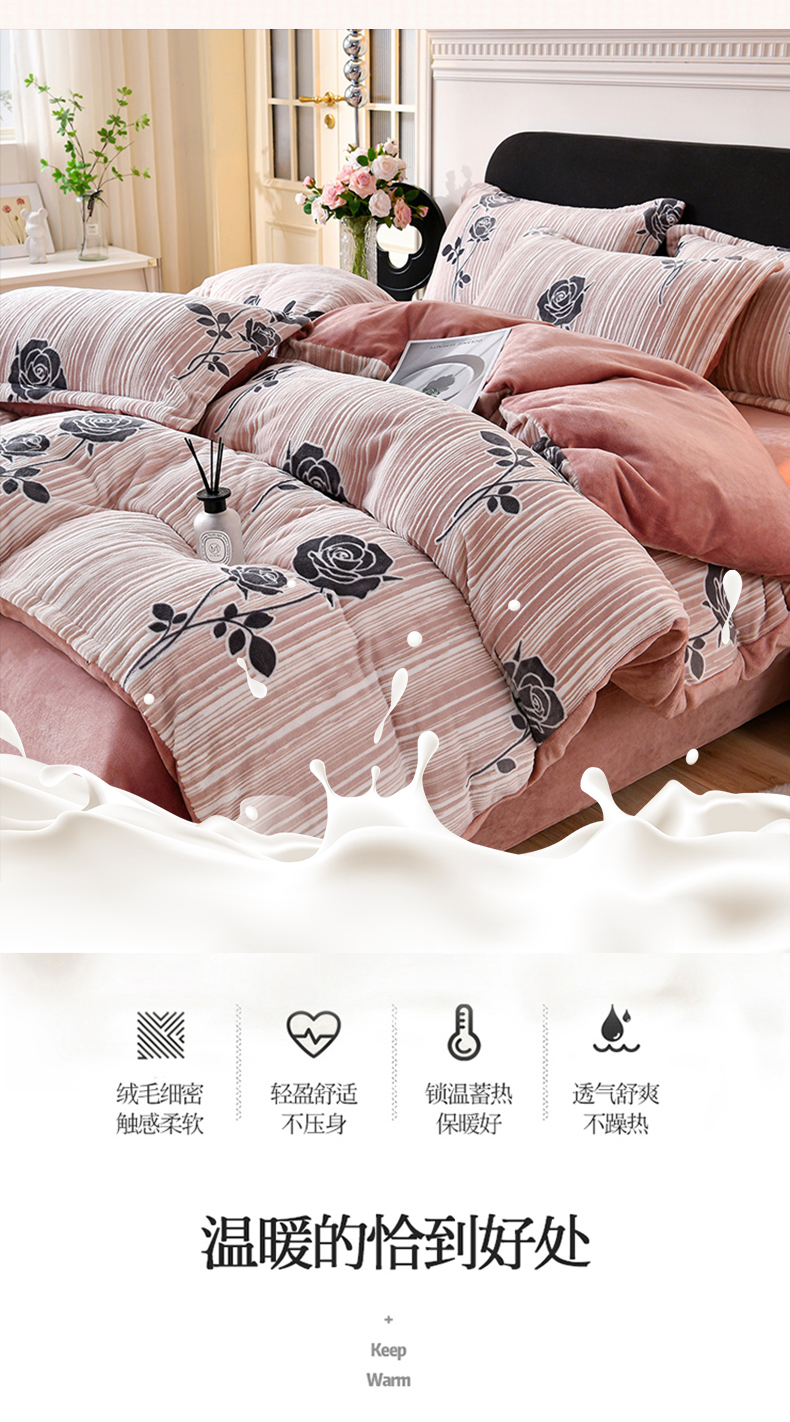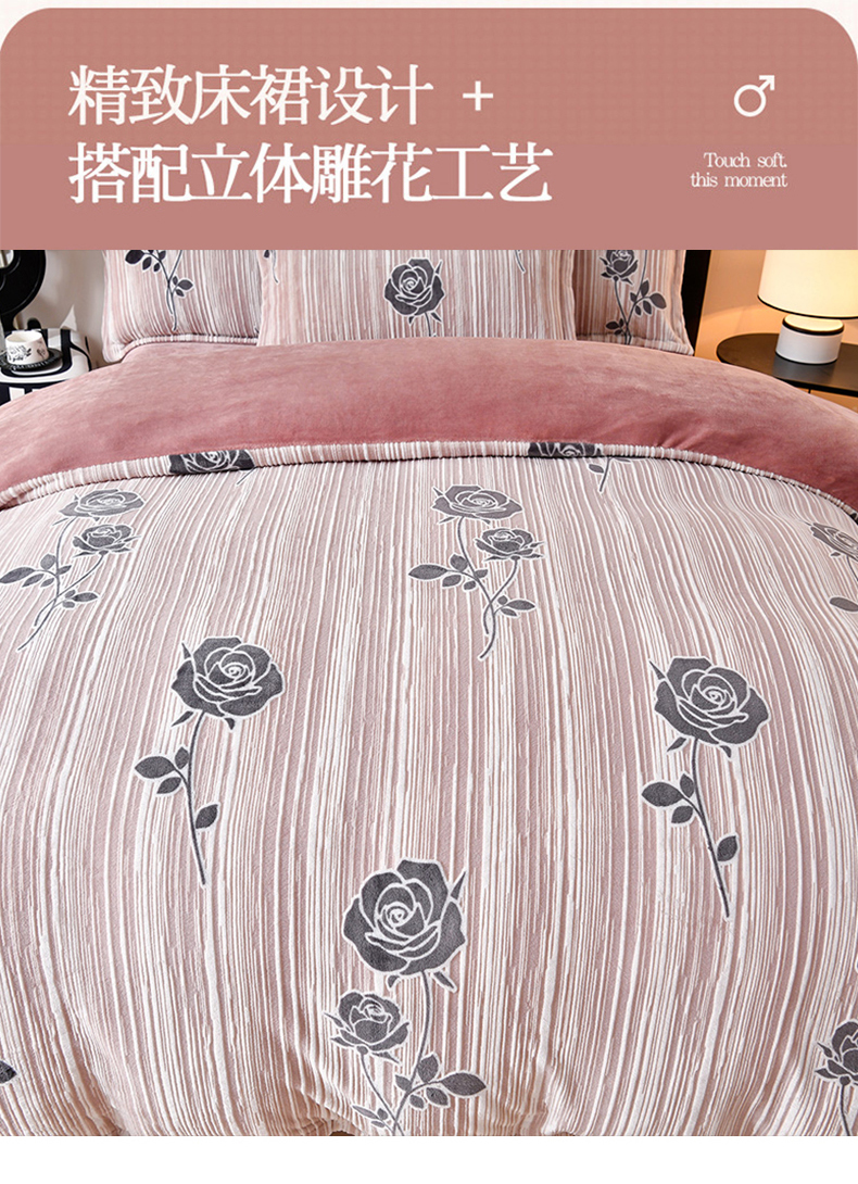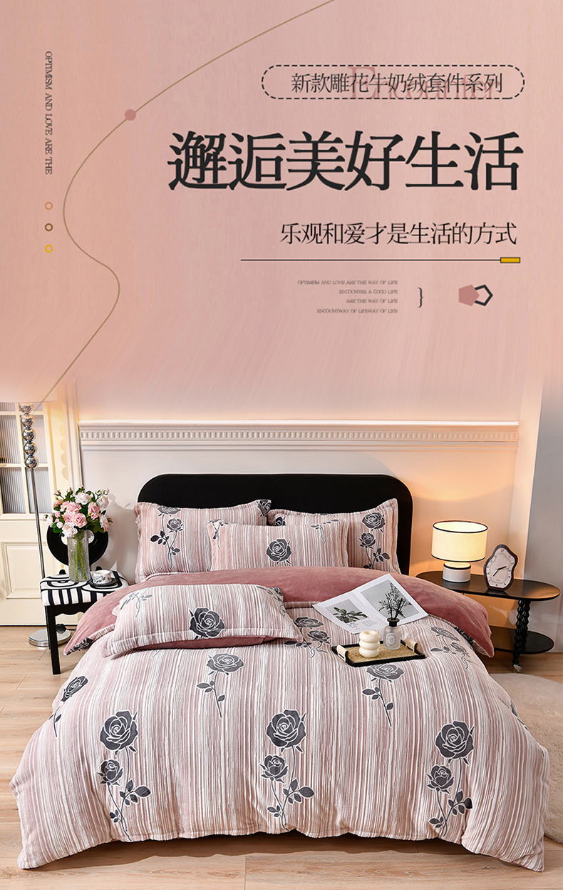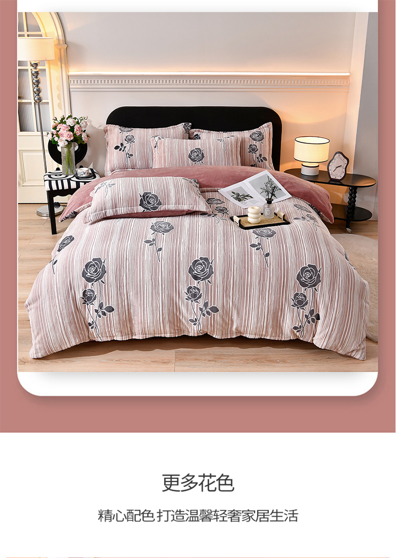 商品名称:梦之星 2025新款8斤重牛奶绒6D雕花绒四件套法莱水晶金貂 玫瑰-粉