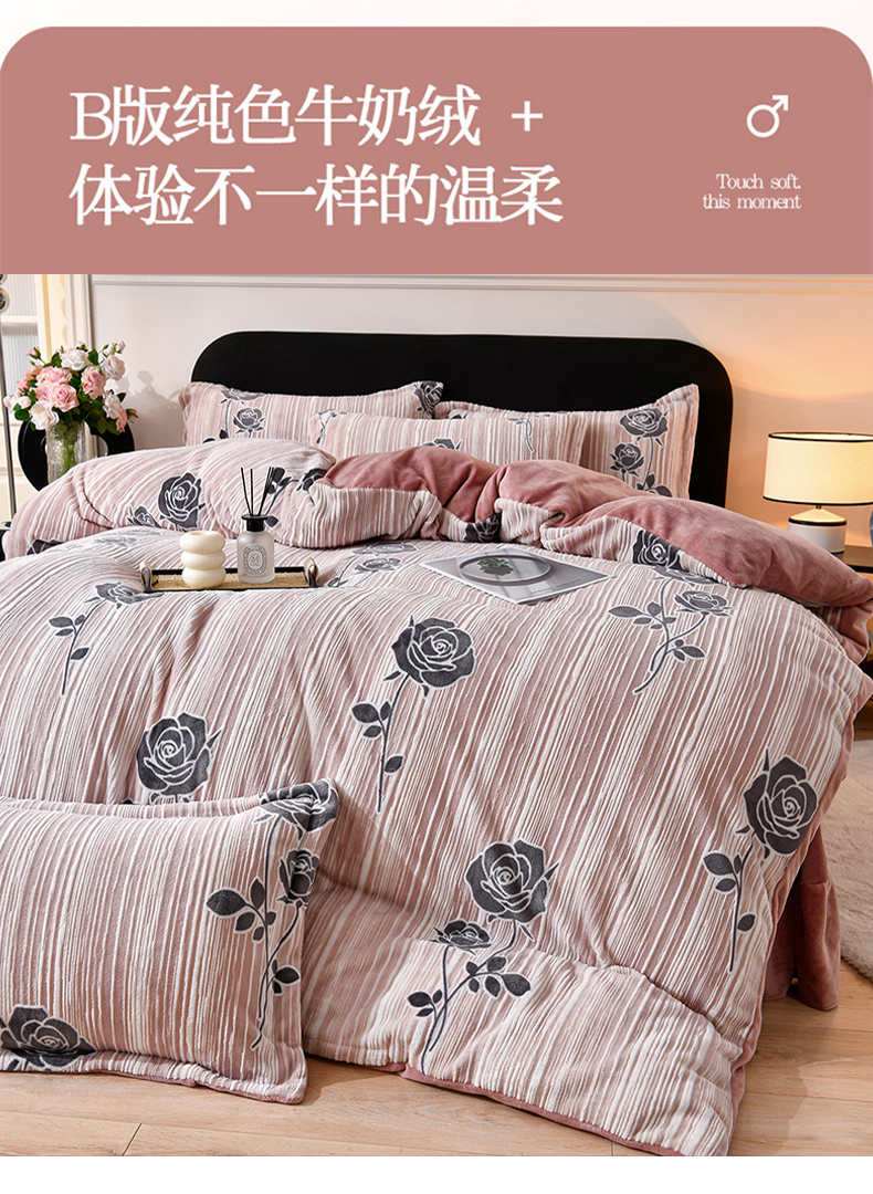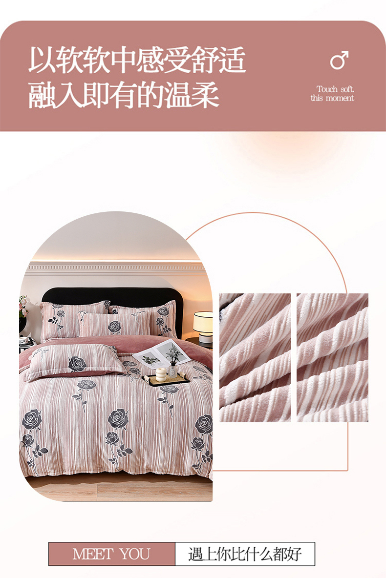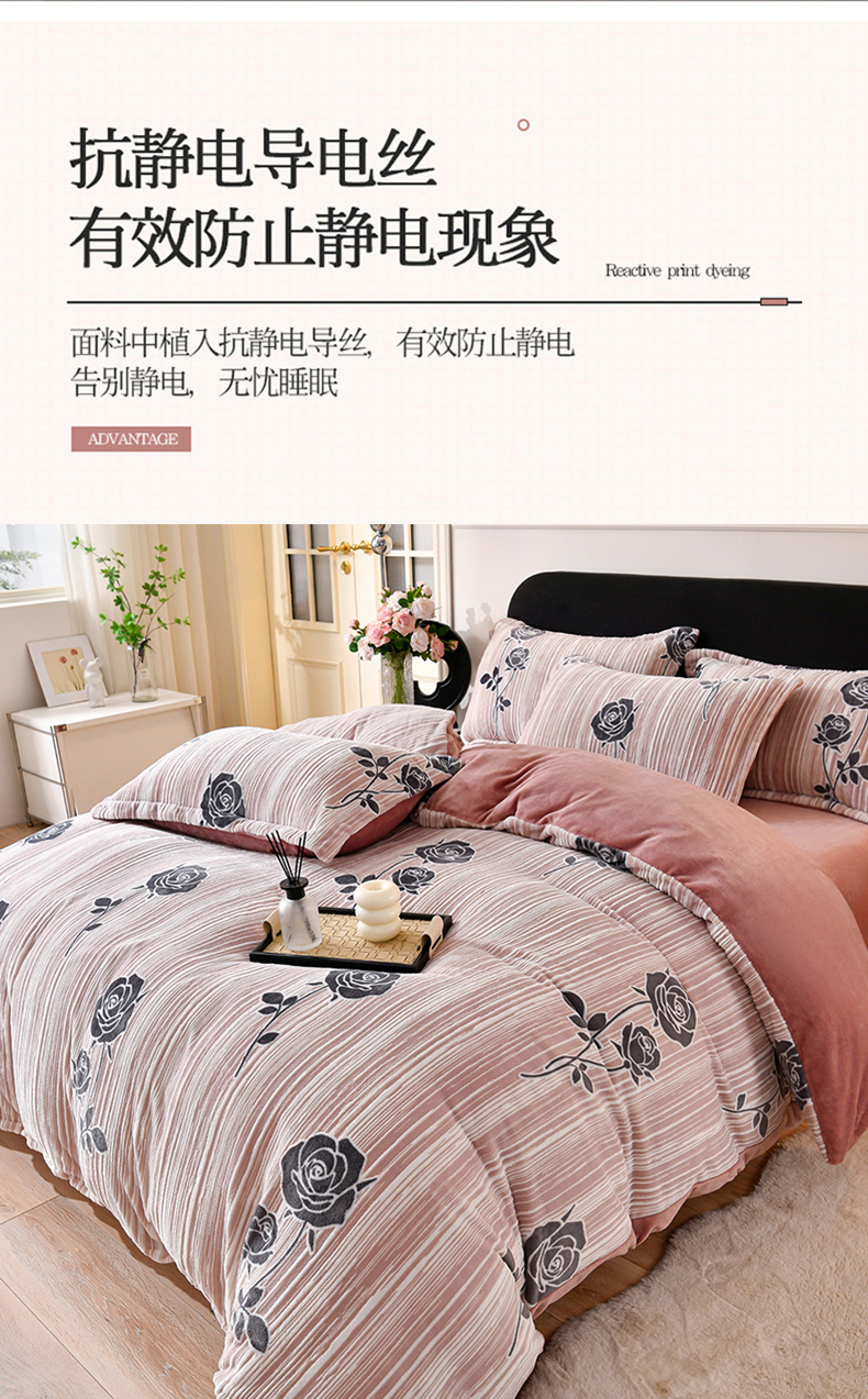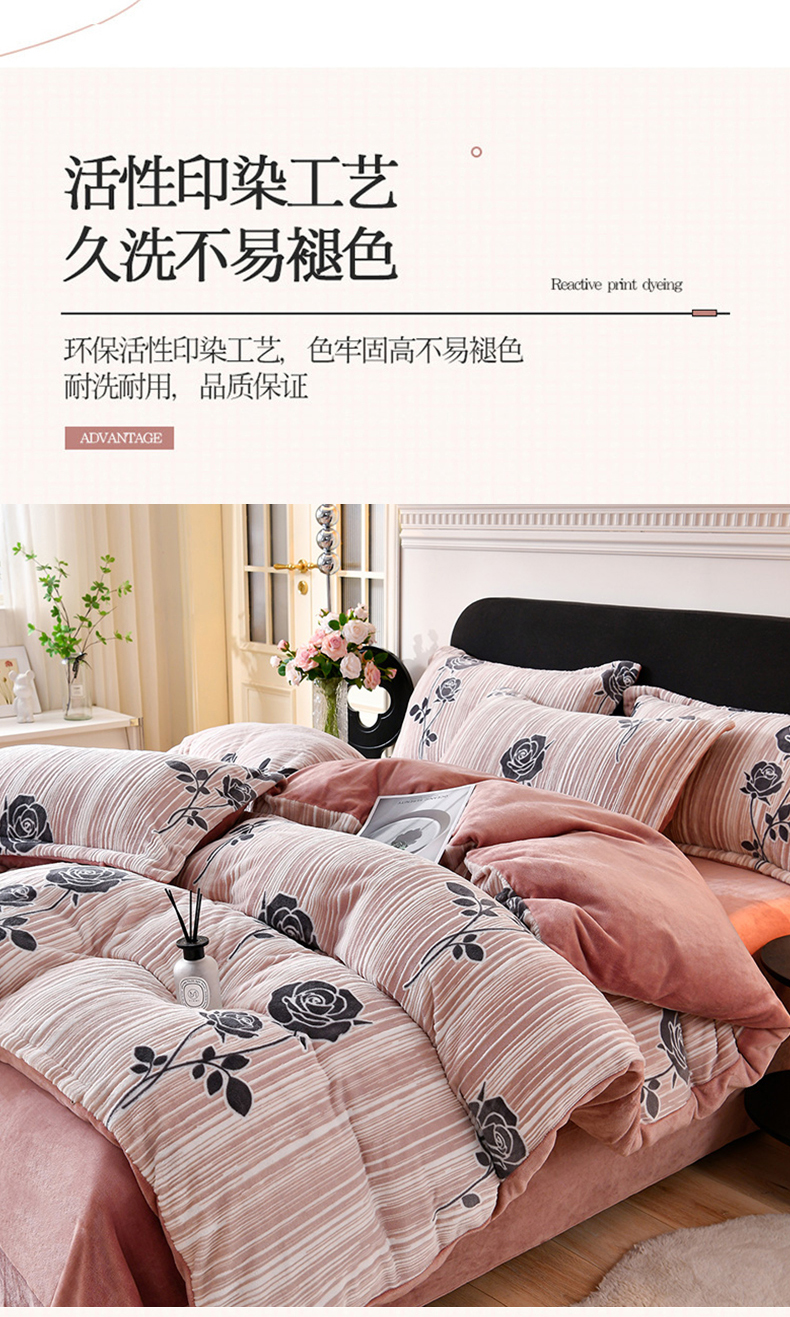 商品名称:梦之星 2025新款8斤重牛奶绒6D雕花绒四件套法莱水晶金貂 玫瑰-粉