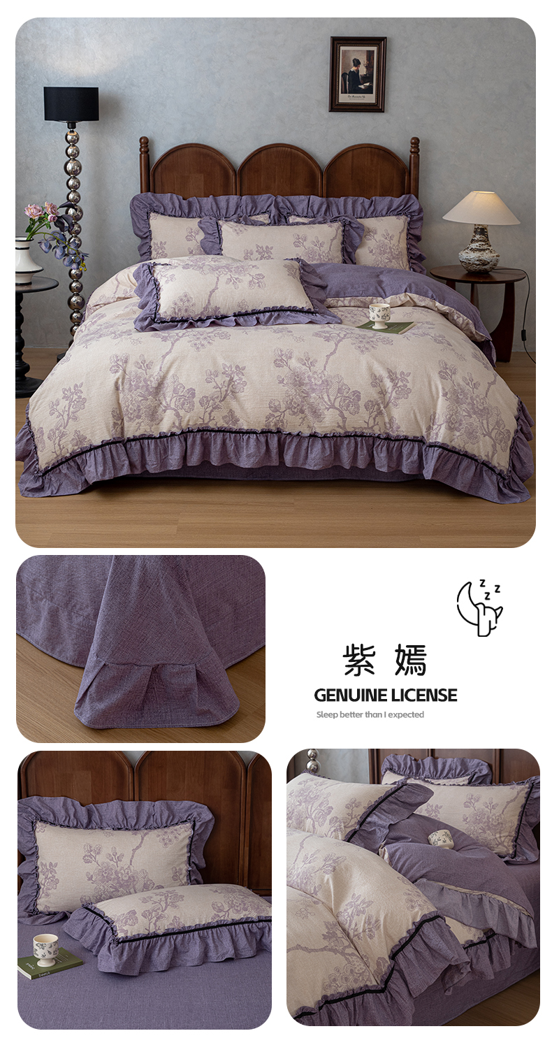 当前位置: 91家纺网 > 商品网购 > 床品套件 > 四件套 > 化纤普通四件套 > 芯贝儿 2025新款加厚原麻复古风亚麻皱皱双层纱水洗m花边四件套 墨尔本