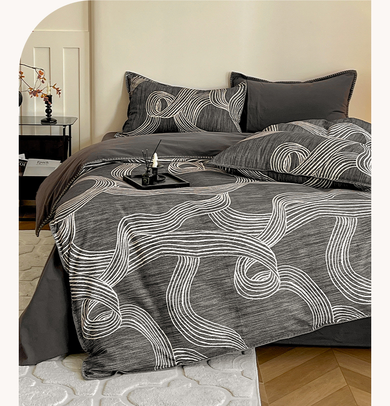 忆生活 2025秋冬全棉加厚磨毛贝壳边四件套野渡-灰