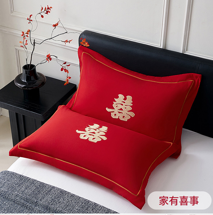 丰淘家纺 2025新款婚庆结婚磨毛刺绣大红枕套 事事如意