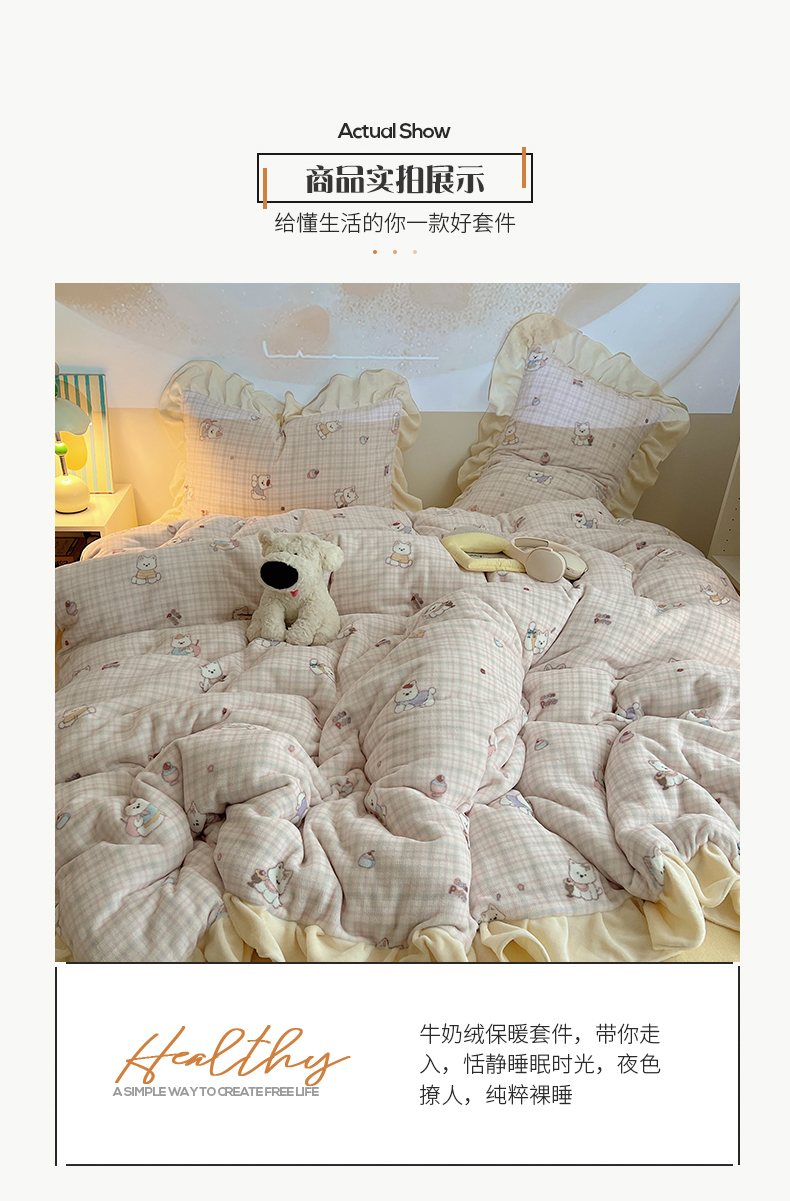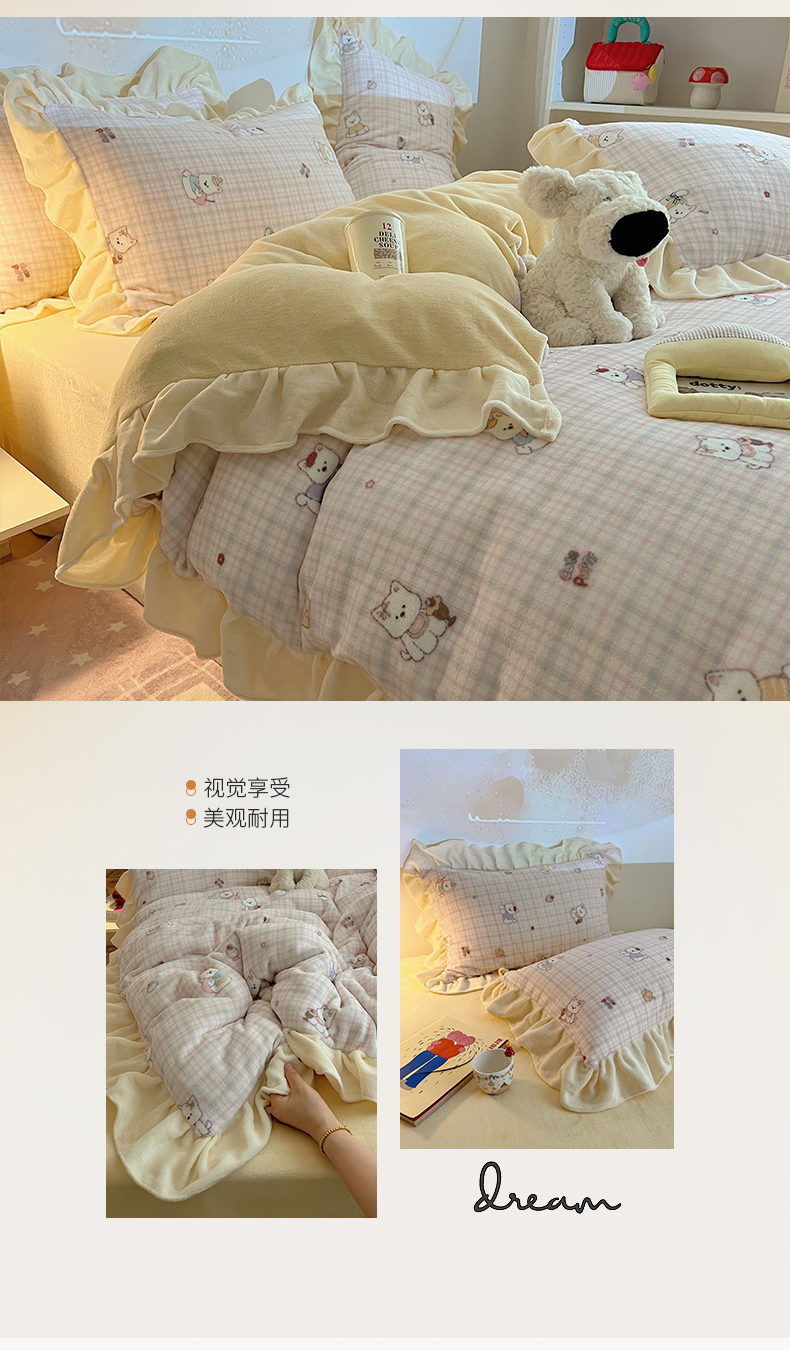 当前位置: 91家纺网 > 商品网购 > 床品套件 > 四件套 > 牛奶绒四件套 > 桃子家居 2025新款A类ins韩版花边少女心可爱卡通碎花加厚牛奶绒四件套 绒-花边粉萌西高地