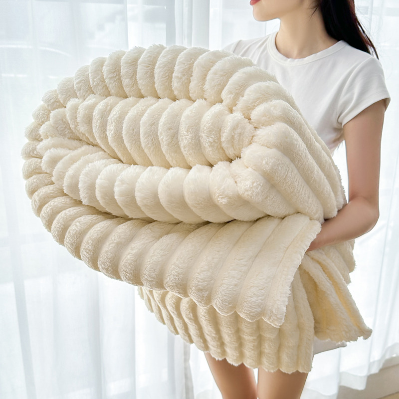 (总)安琪家纺 2025新款280克直播爆品兔毛绒高克重多功能抽条毛毯盖毯午睡毯跨境外贸