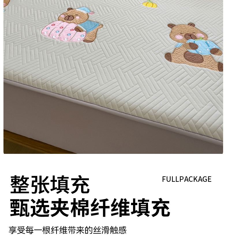 • 91家纺网 家纺一手货源 找家纺 莱家富 2025新款A类三联刺绣毛巾绣夹棉床笠三件套单床笠 微笑小猫-樱花粉